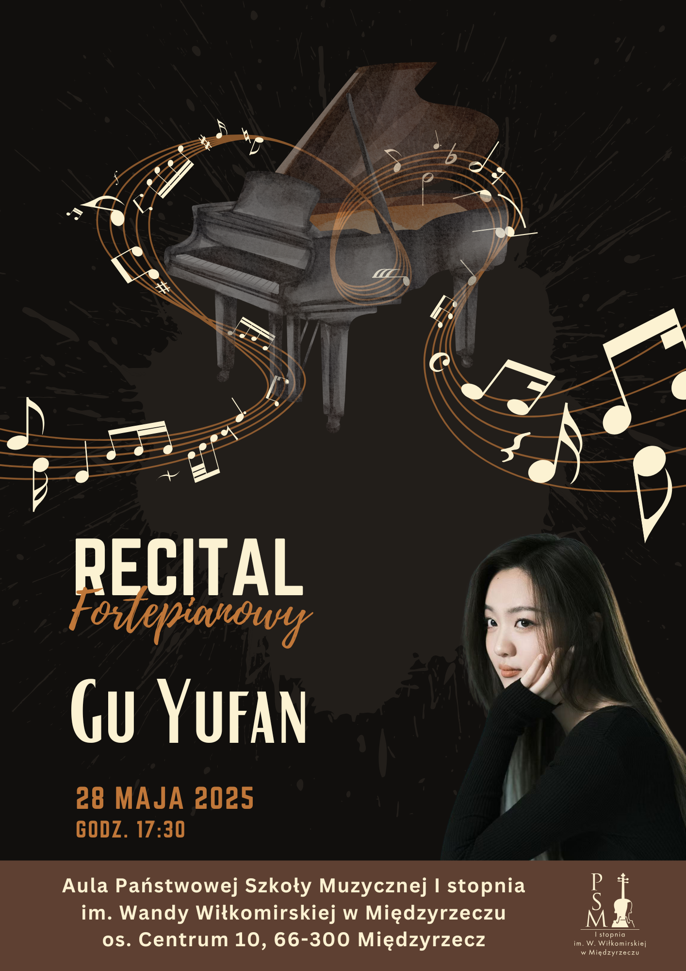 Serdecznie zapraszamy na Recital fortepianowy Gu Yufan, który odbędzie się w auli szkoły 28 maja 2025 r. (środa) o godzinie 17:30.