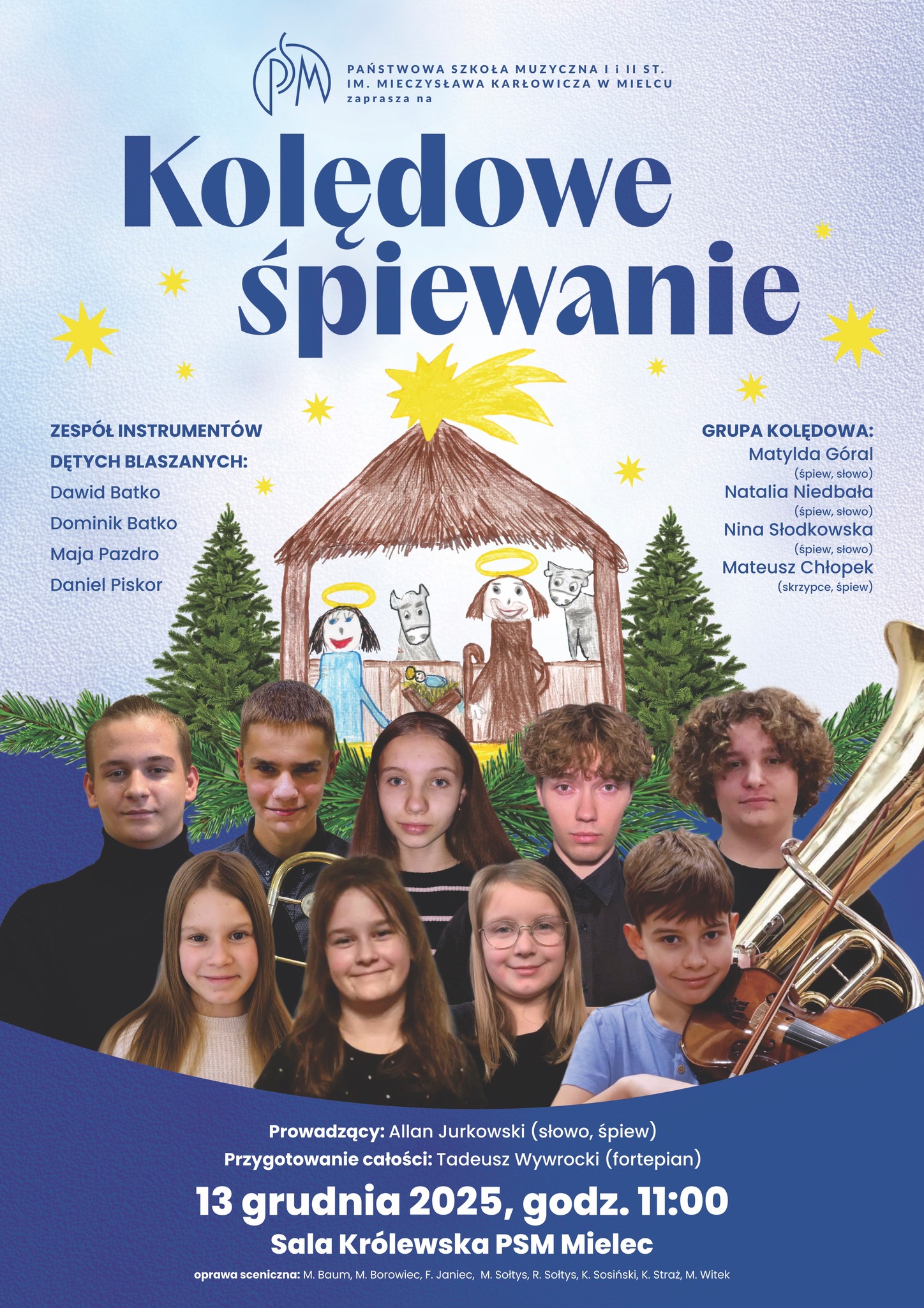 W sobotnie przedpołudnie, 13 grudnia 2025 r., Sala Królewska wypełniła się muzyką, światłem i świąteczną atmosferą. Wszystko za sprawą „Kolędowego śpiewania” przygotowanego pod opieką nauczyciela Tadeusza Wywrockiego. Autorska muzyka i teksty, najpiękniejsze polskie kolędy oraz wyjątkowa scenografia i oprawa świetlna wprowadziły licznie zgromadzoną publiczność w nastrój zbliżających się Świąt Bożego Narodzenia.