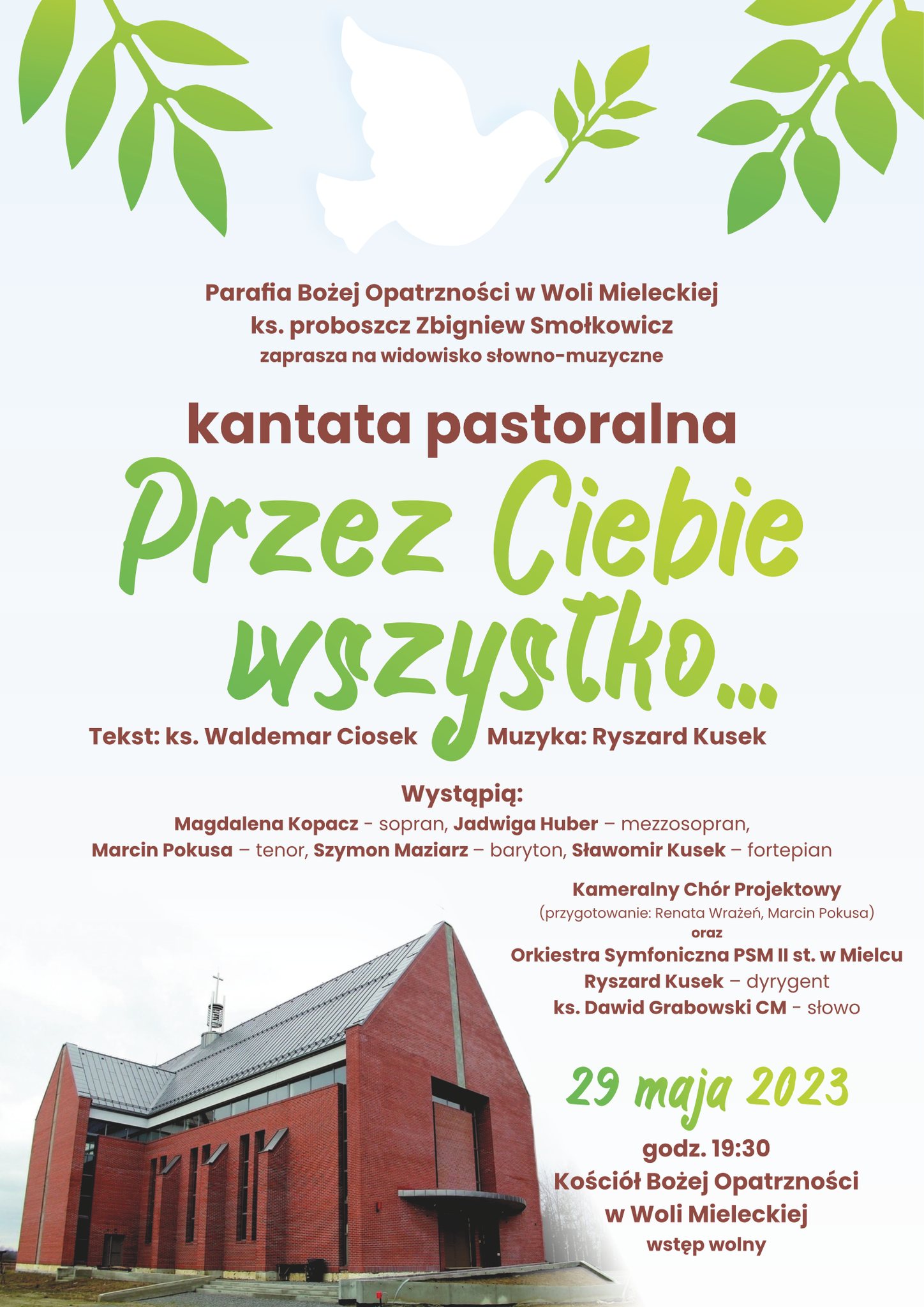 Zapraszamy serdecznie na Koncert do Woli Mieleckiej. Wykonana zostanie Kantata pastoralna "Przez Ciebie wszystko..."