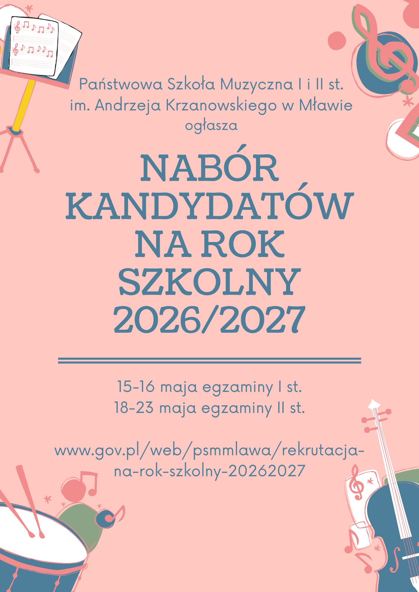 Państwowa Szkoła Muzyczna I st. zaprasza dzieci i młodzież od 6 do 16 roku życia do podjęcia w roku szkolnym 2026/2027 nauki gry na następujących instrumentach: