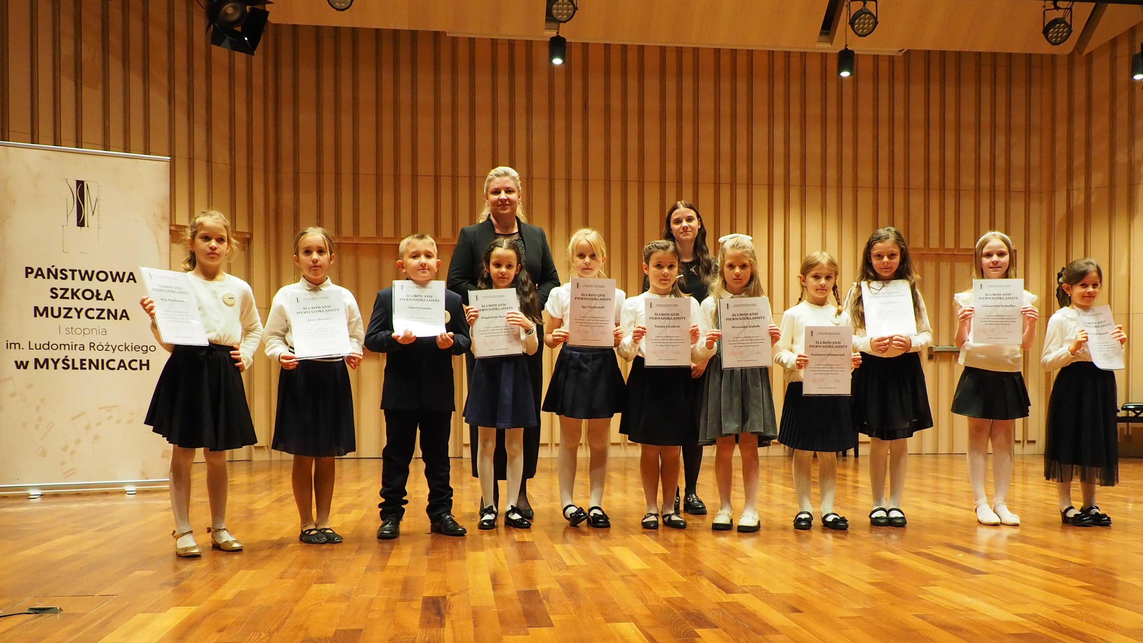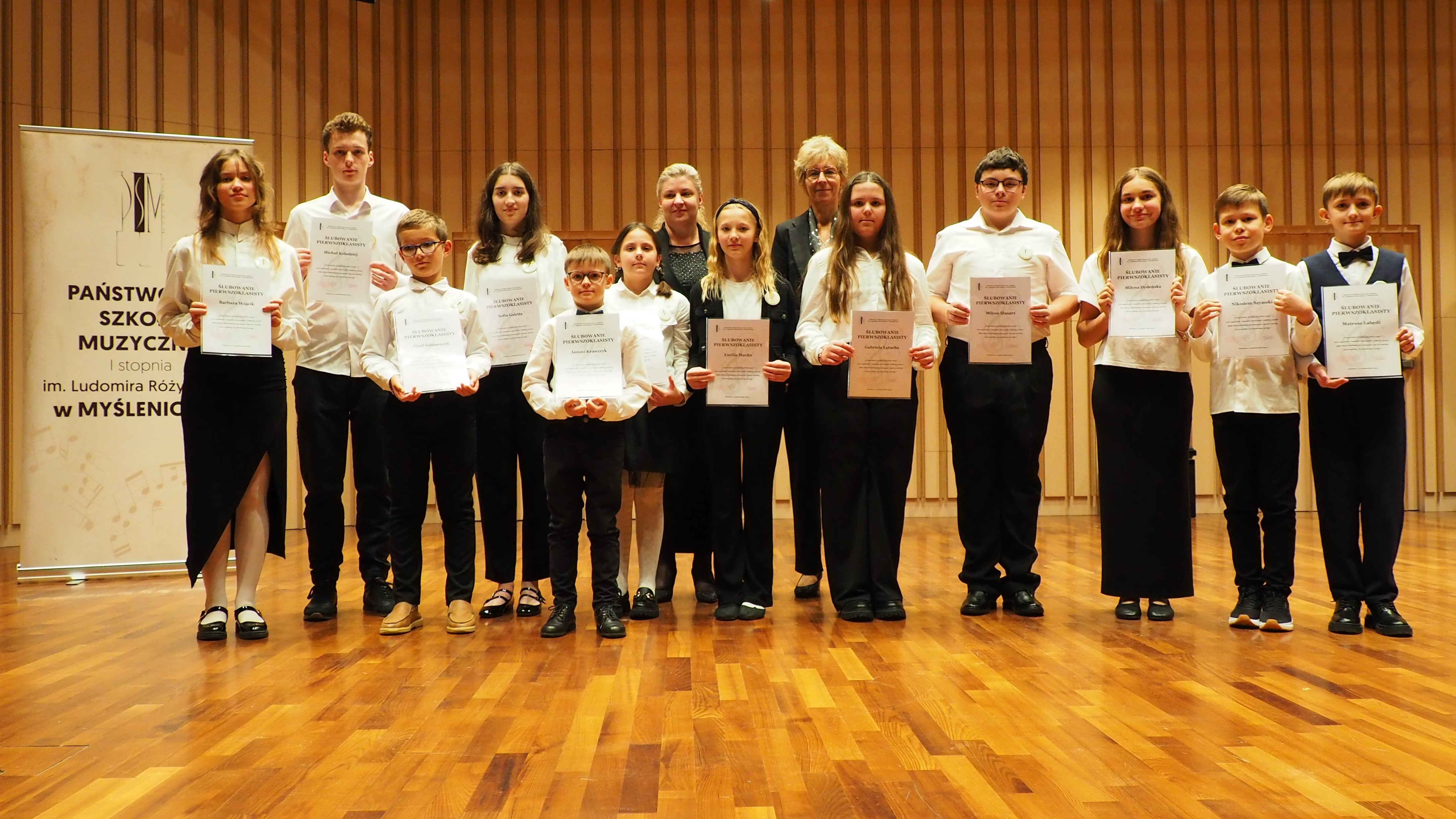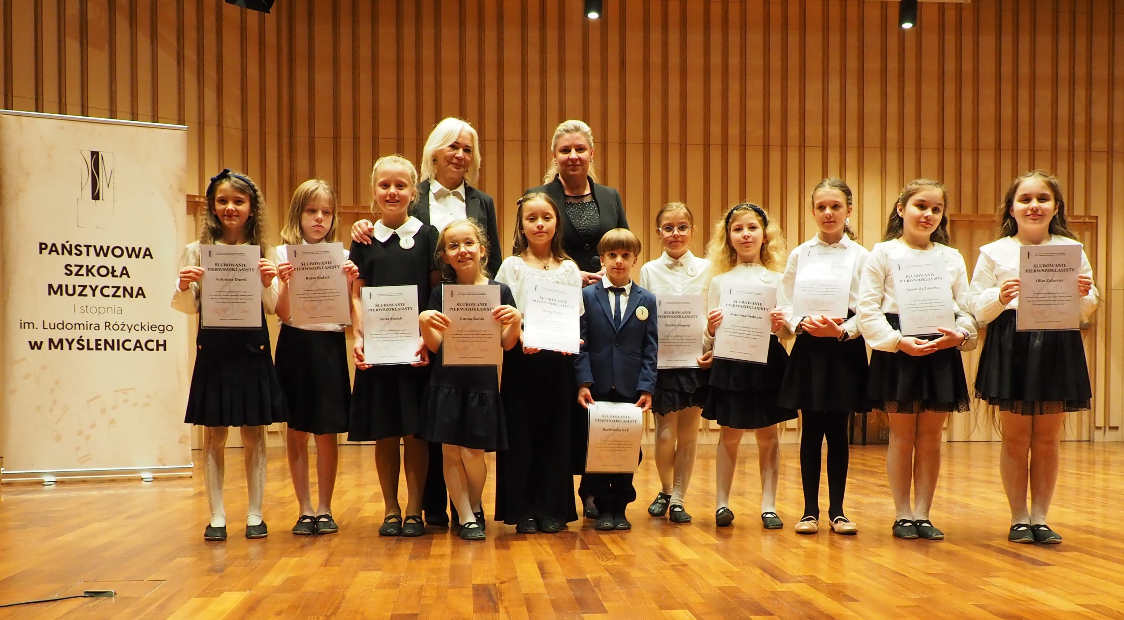 Uczniowie klas pierwszych sześcioletniego oraz czteroletniego cyklu nauczania Państwowej Szkoły Muzycznej I stopnia im. Ludomira Różyckiego w Myślenicach złożyli uroczyste ślubowanie i zostali pełnoprawnymi członkami społeczności szkolnej. Uroczystość odbyła się 27 października 2025 roku w sali koncertowej z udziałem uczniów, nauczycieli oraz rodziców.