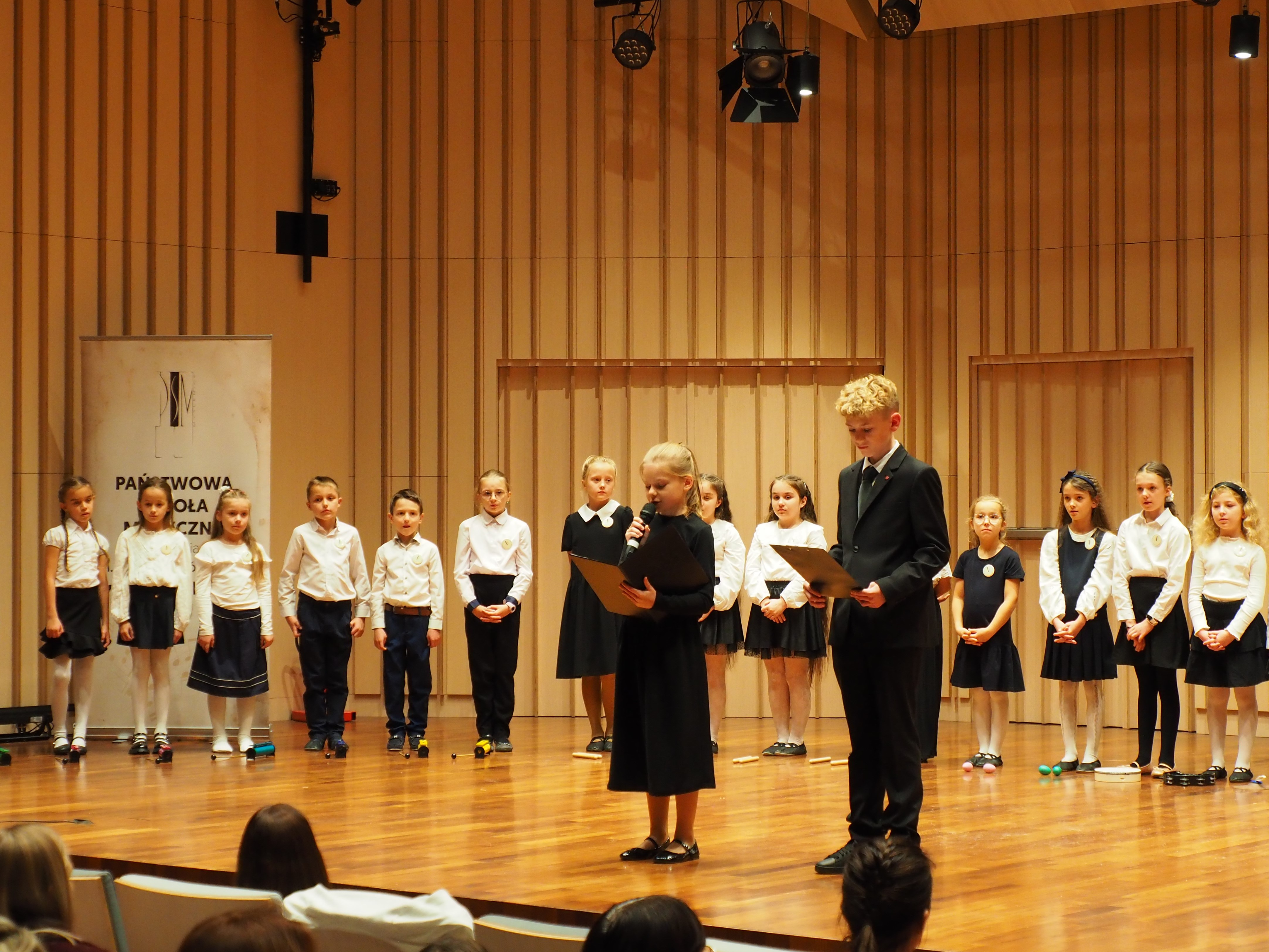 Podczas uroczystości młodzi artyści zachwycili śpiewem, recytacją oraz grą na instrumentach perkusyjnych! Uczniów do ślubowania przygotowały p. Dorota Bałucka, p. Renata Miśko, p. Faustyna Filipska oraz p. Monika Szymska, a akompaniował p. Jarosław Olszewski.