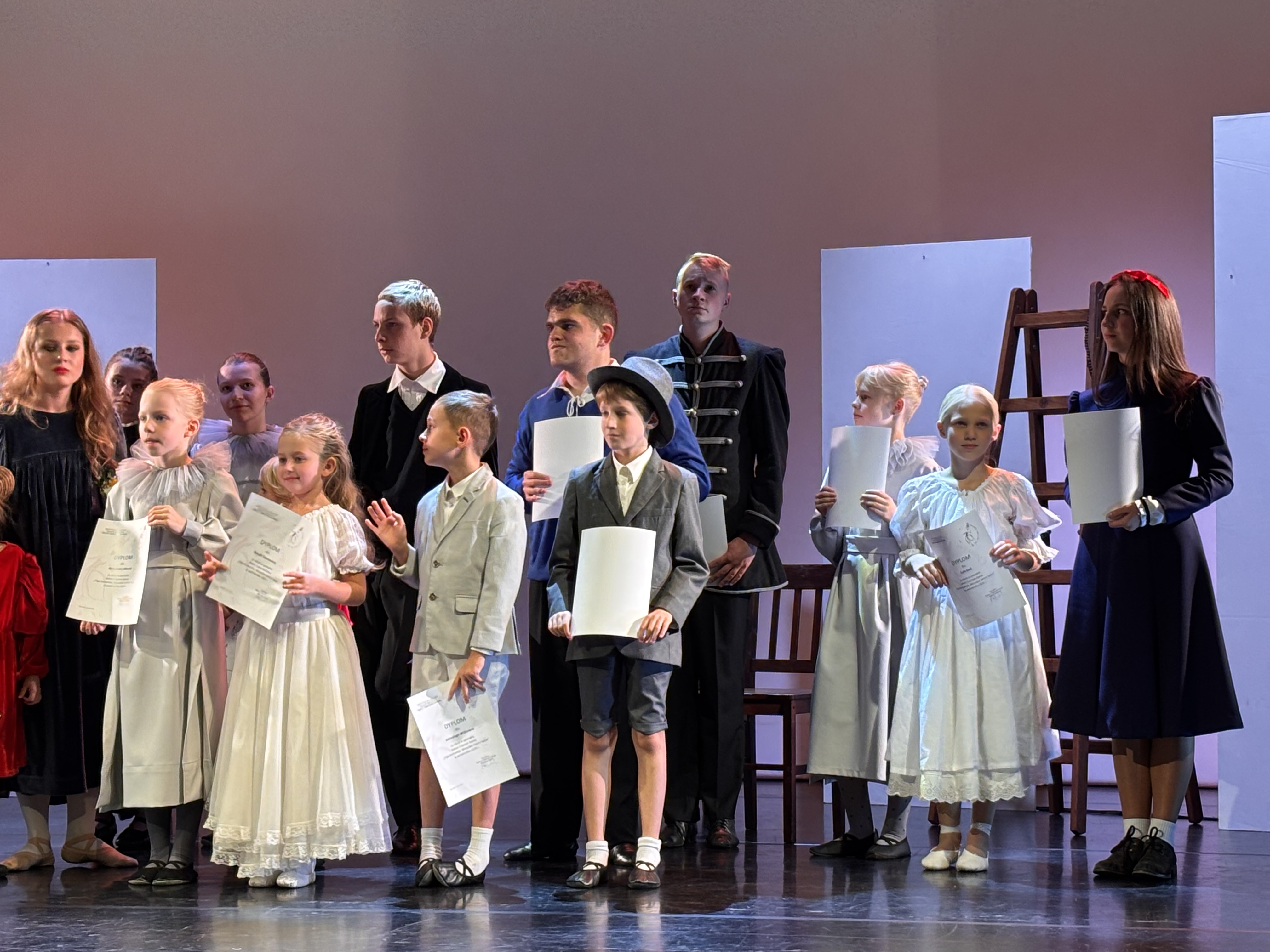 W Państwowej Szkole Muzycznej I stopnia im. Ludomira Różyckiego w Myślenicach w dniu 15 września 2025 roku odbyły się warsztaty taneczne prowadzone przez Balet Dworski Cracovia Danza. Warsztaty były związane z realizacją projektu "Olga Boznańska. Wszystkie kolory tańca". Zajęcia w każdej Instytucji Partnerskiej obejmowały część warsztatową oraz część castingową, w czasie której wyłonieni zostali uczestnicy spektaklu do roli dzieci z obrazów artystki. W ramach projektu upamiętniającego Olgę Boznańską patronkę 2025 roku zostały zrealizowane dwa spektakle 21 października w Krakowskim Teatrze VARIÉTÉ oraz 26 października w Teatrze Groteska w Krakowie. Uczniowie Państwowej Szkoły Muzycznej I stopnia im. Ludomira Różyckiego w Myślenicach wyłonieni podczas warsztatów tanecznych organizowanych w naszej szkole wystąpili 21 października 2025 roku w Krakowskim Teatrze VARIÉTÉ oraz 26 października w Teatrze Groteska z Baletem Cracovia Danza. Naszą szkołę na premierze reprezentowali wcielając się w postaci z portretów i myszy w paryskiej pracowni Boznańskiej: Zofia Biela, Marek Górnik, Antoni Wójtowiec, Emma Kania oraz Aleksandra Młocek. Serdecznie gratulujemy młodym aktorom i życzymy dalszego rozwijania talentów oraz muzycznej i tanecznej pasji!