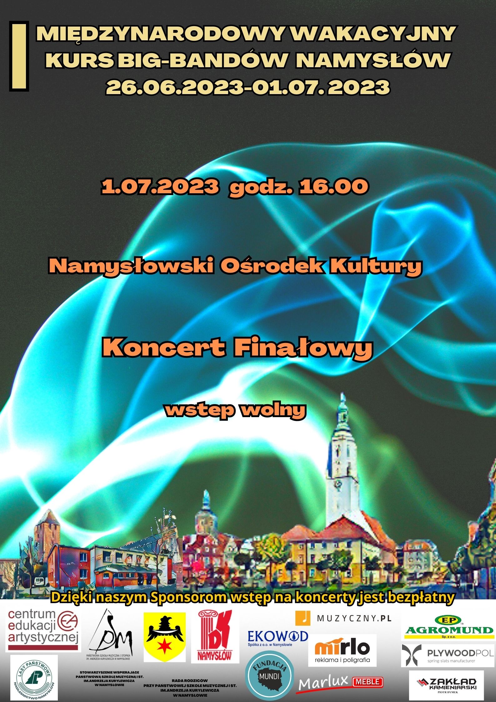 1 lipca 2023 o godz. 16:00 apraszamy na koncert finałowy I Międzynarodowego Wakacyjnego Kursu Big-Bandów, ktory odbędzie się w Namysłowskim Ośrodka Kultury.