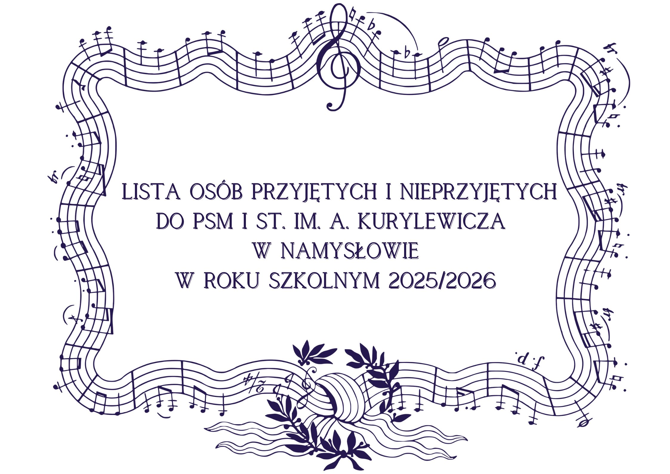 Lista osób przyjętych i nieprzyjętych do PSM I st. im. A. Kurylewicza w Namysłowie na rok szkolny 2025/2026