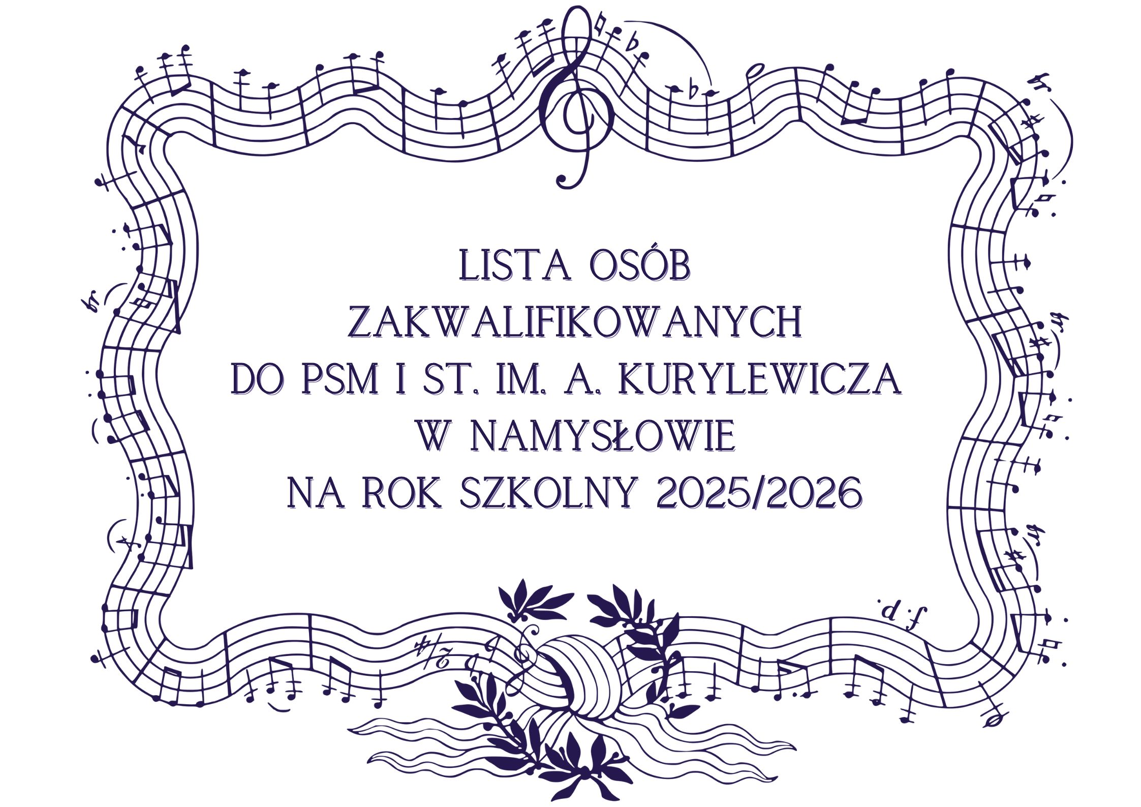 LISTA OSÓB ZAKWALIFIKOWANYCH DO PSM I ST. IM. A. KURYLEWICZA W NAMYSŁOWIE NA ROK SZKOLNY 2025/2026