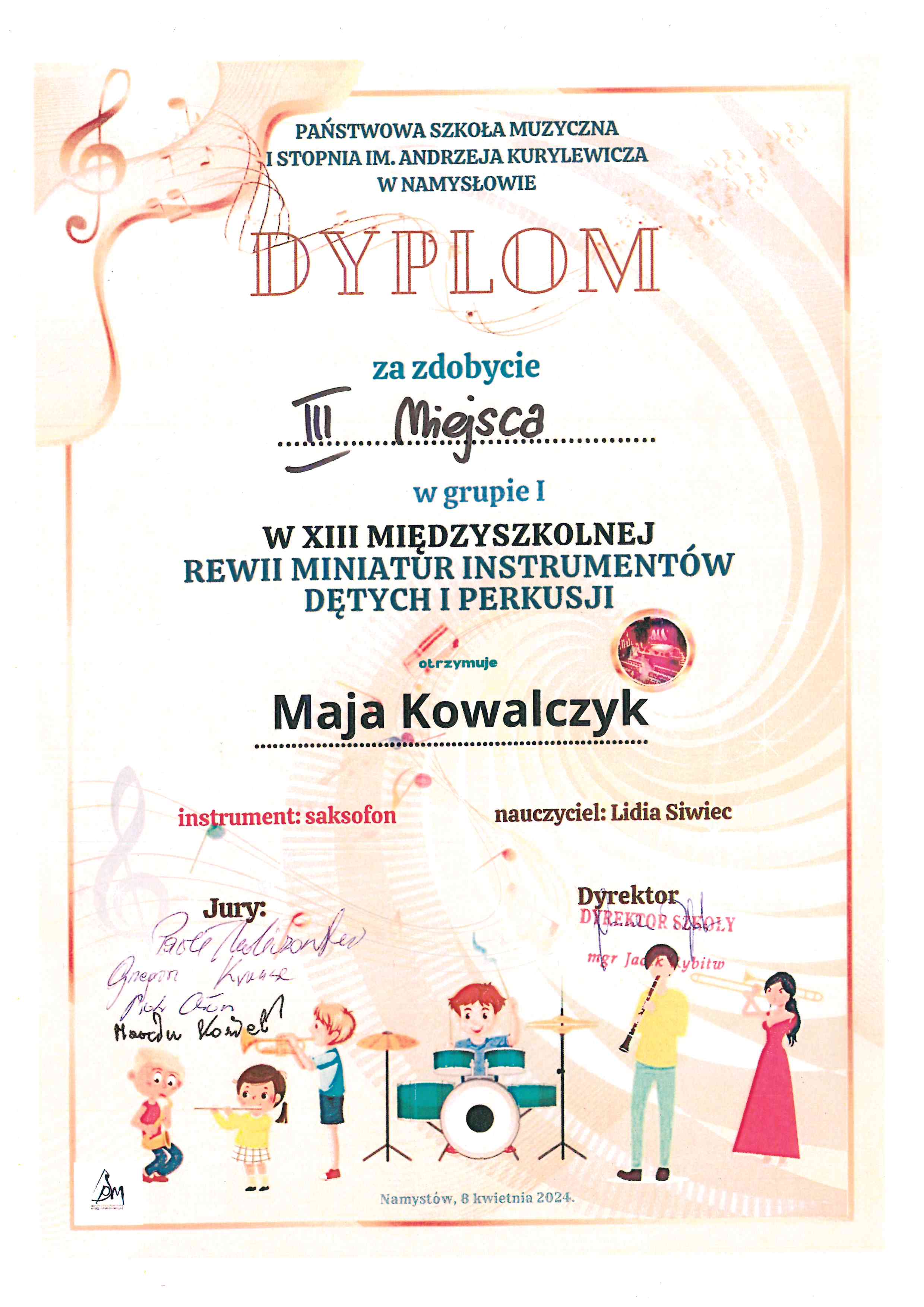 III miejsce w grupie I - Maja Kowalczyk uczennica pani Lidii Siwiec