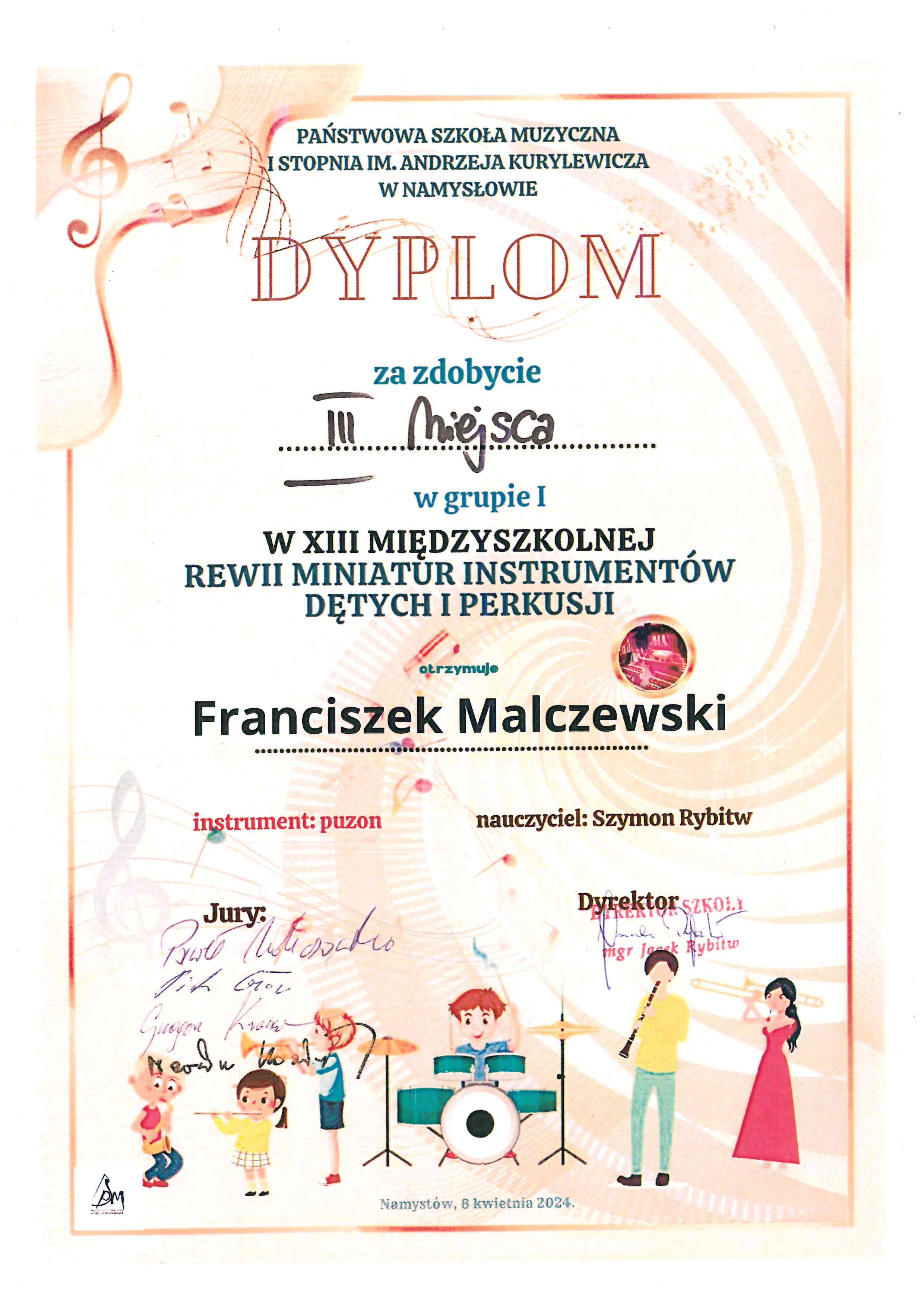 III miejsce w grupie I - Franciszek Malczewski uczeń pana Szymona Rybitw