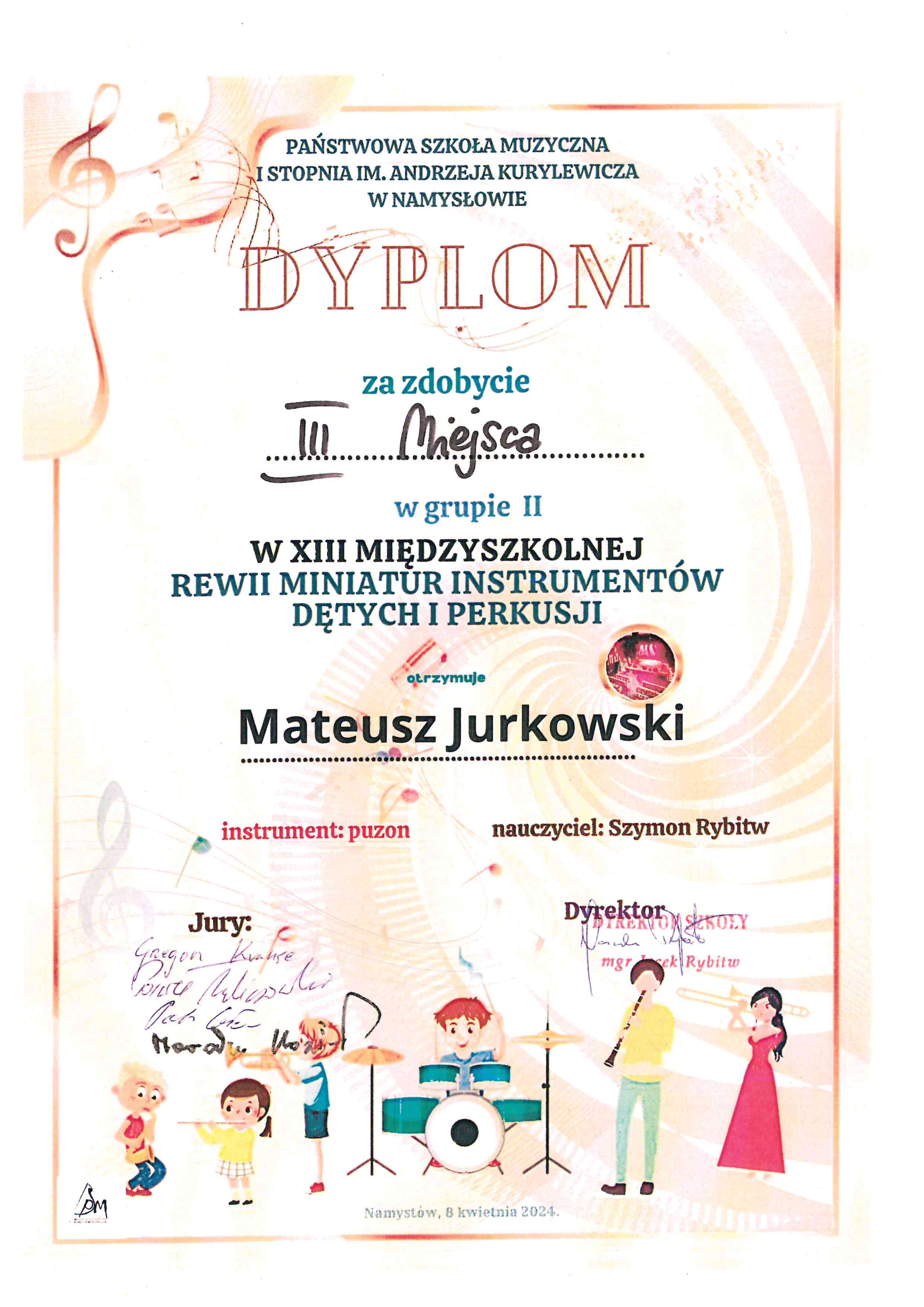 III miejsce w grupie II - Mateusz Jurkowski uczeń pana Szymona Rybitw