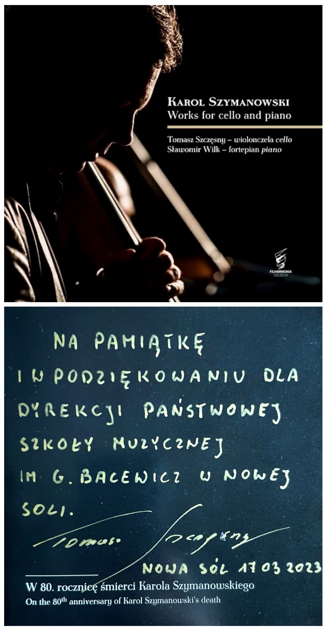 W dniu 17 marca 2023 roku w auli szkoły w ramach doskonalenia zawodowego nauczycieli regionu lubuskiego przy współorganizacji Pani Izabeli Serpiny - wizytator regionu lubuskiego oraz Centrum Edukacji Artystycznej odbyły się warsztaty wiolonczelowe pt. „Problemy w nauczaniu początkowym w grze na wiolonczeli- postawa, aparat gry i inne aspekty wpływające na poprawność wykonawstwa wiolonczelowego”. Wykład oraz warsztaty poprowadził Pan dr hab. Tomasz Szczęsny profesor Akademii Sztuki w Szczecinie. W podziękowaniu za organizację warsztatów nasza szkoła otrzymała płytę autorstwa Pana profesora z transkrypcjami pieśni Karola Szymanowskiego oraz pozostałymi opracowaniami muzyki Szymanowskiego na wiolonczelę i fortepian. Serdecznie dziękujemy.