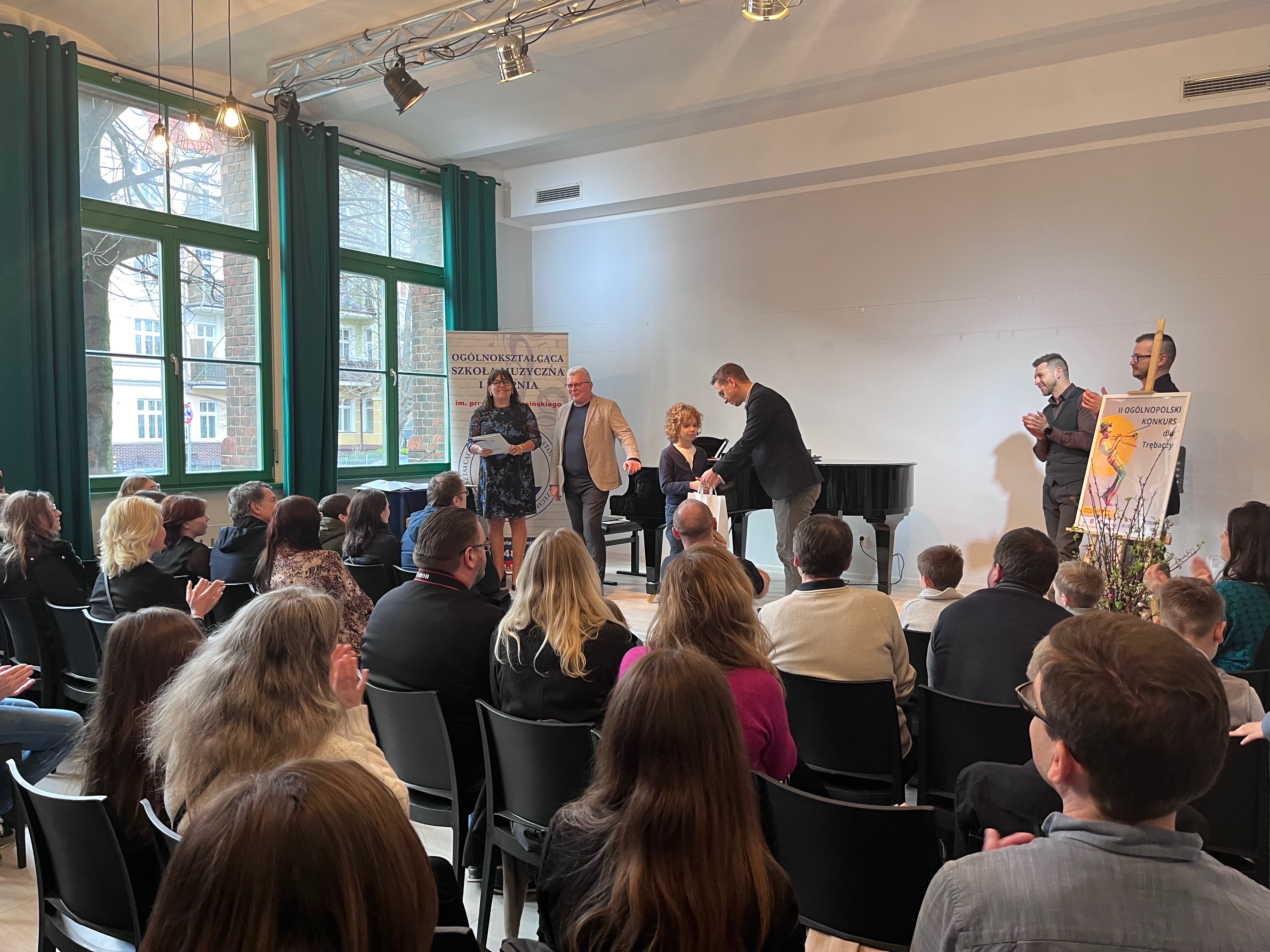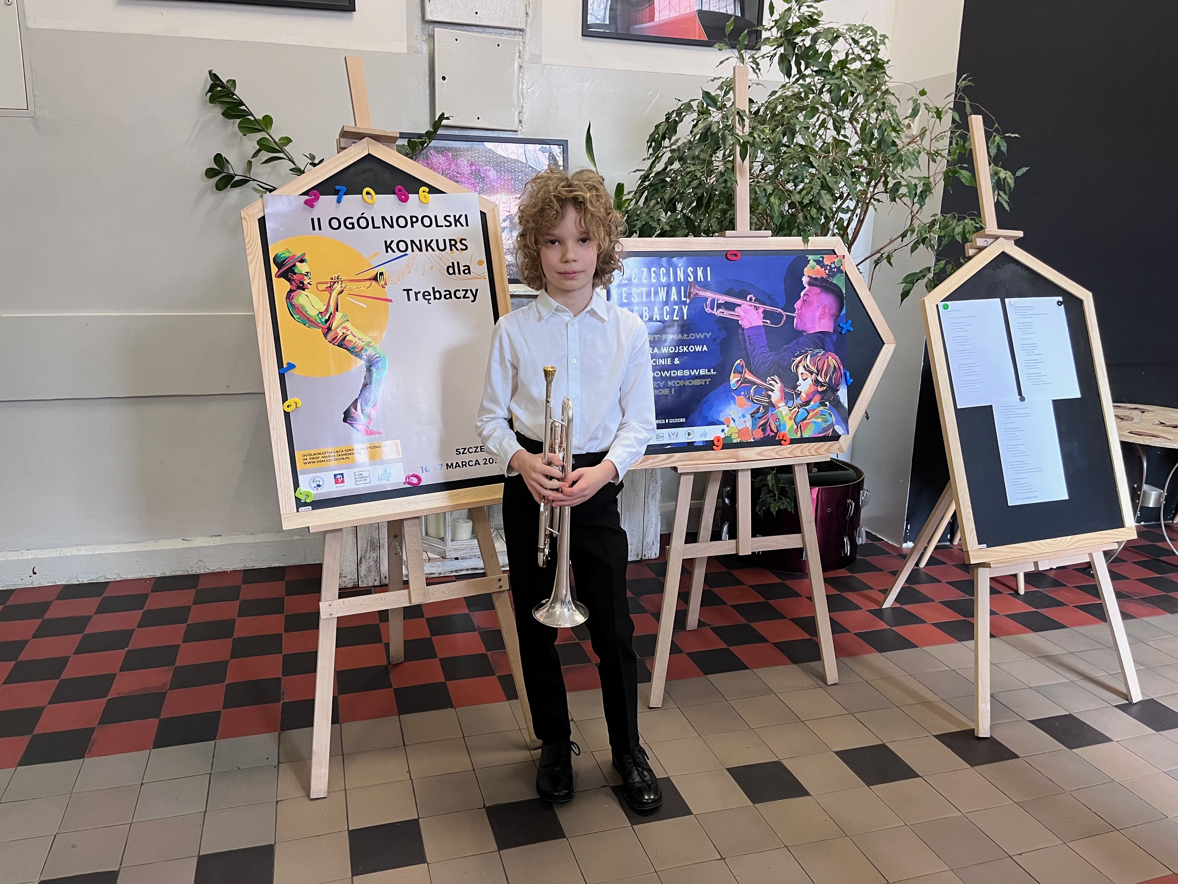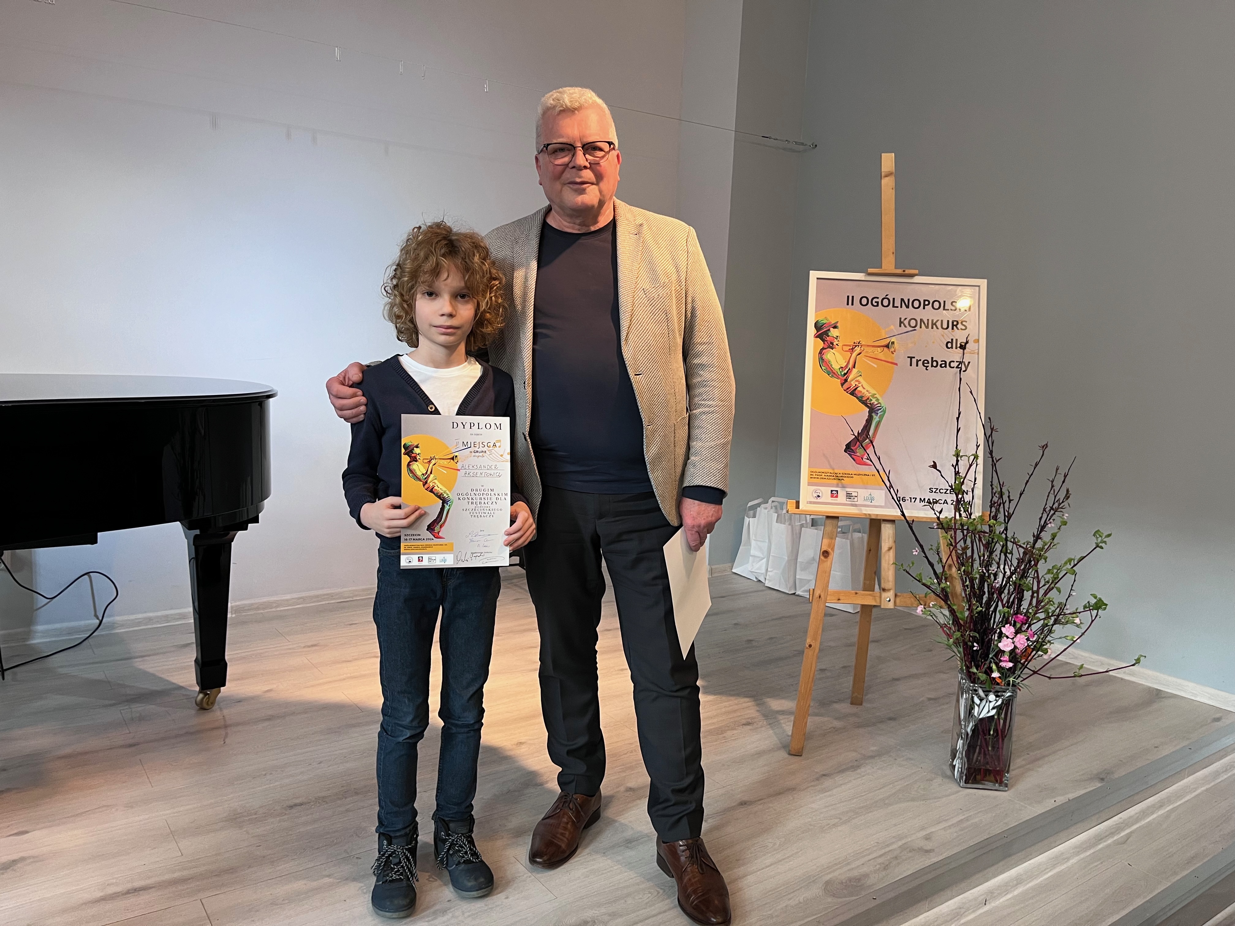W niedzielę 17 marca nasz młody trębacz Aleksander Aksentowicz z klasy trąbki Pawła Literskiego pojechał tym razem na północ czyli do Szczecina 😀 Był to nasz pierwszy wyjazd w tym kierunku (zawsze jeździliśmy „na dół” Polski, a teraz „do góry”), a pojechaliśmy na II Ogólnopolski Konkurs Trębaczy. Konkurs został zorganizowany przez Ogólnokształcącą Szkołę Muzyczną I stopnia im. Prof. Marka Jasińskiego w Szczecinie w ramach Szczecińskiego Festiwalu Trębaczy. Już po raz pierwszy Szczecin okazał się dla nas gościnny i wróciliśmy z sukcesem ponieważ Olek Aksentowicz zdobył II nagrodę w swojej grupie (klasy III i IV). Z dyplomem wyjechała ze Szczecina również pani akompaniatorka Alicja Aksentowicz której baaaardzo dziękuję za pomoc w przygotowaniu Olka. Bardzo dziękuje również jego tacie Remigiuszowi Aksentowiczowi za to, że bezpiecznie dowiózł oraz przywiózł całą konkursową „brygadę"