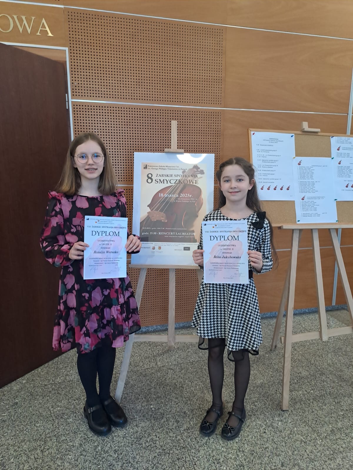 We wtorek 18 marca dwie skrzypaczki z naszej szkoły Róża Jakubowska oraz Rozalin Werszko brały udział w VIII Żarskich Spotkaniach Smyczkowych. Róża została Laureatką I miejsca natomiast Rozalin otrzymała wyróżnienie. Dziewczynkom akompaniowała Pani Joanna Bogdanowicz.
