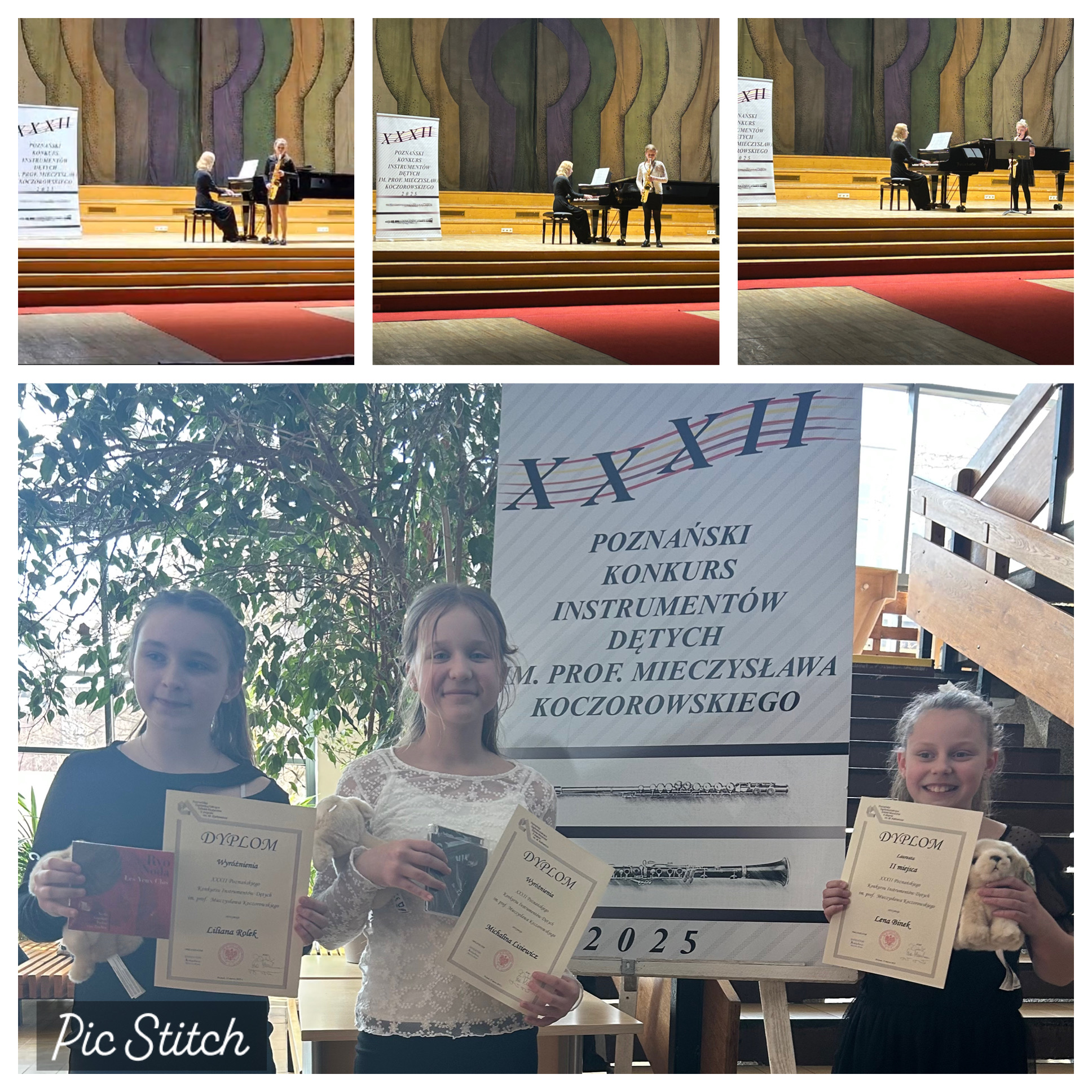 W sobotę nasze uczennice brały udział w Poznańskim Konkursie Instrumentów Dętych Drewnianych. Liliana Rolek, Lena Binek i Michalina Lisiewicz zaprezentowały się przy akompaniamencie pani Lucyny Jędrzejewskiej. Lena została „Laureatką II miejsca”, a Liliana i Michalina uzyskały „Wyróżnienia ”.