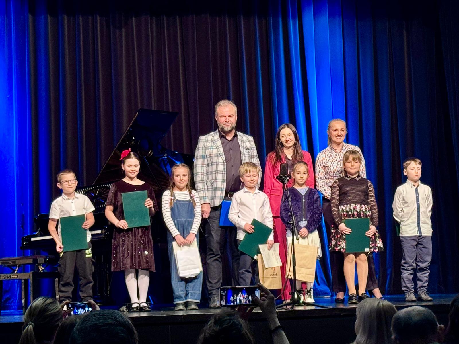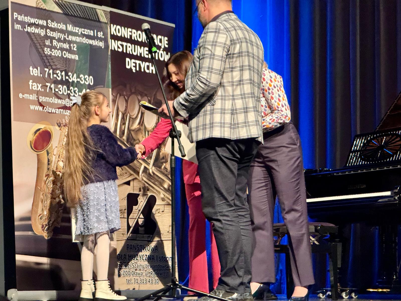 Flecistkom na scenie towarzyszyła nasza niezastąpiona pianistka Taisiia Serafimova. Obie dziewczynki wykazały się ogromną odwagą sceniczną i pięknie niosły dźwięki fletu przez oławską salę koncertową. Gratuluję wytrwałości w ćwiczeniach i wspaniałych występów!