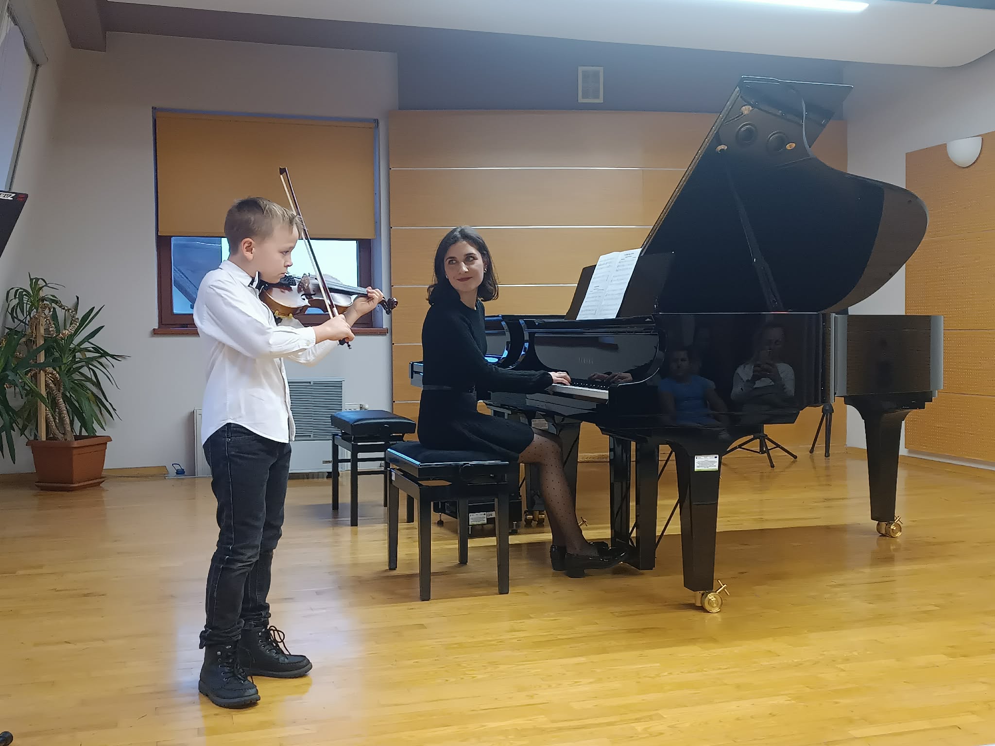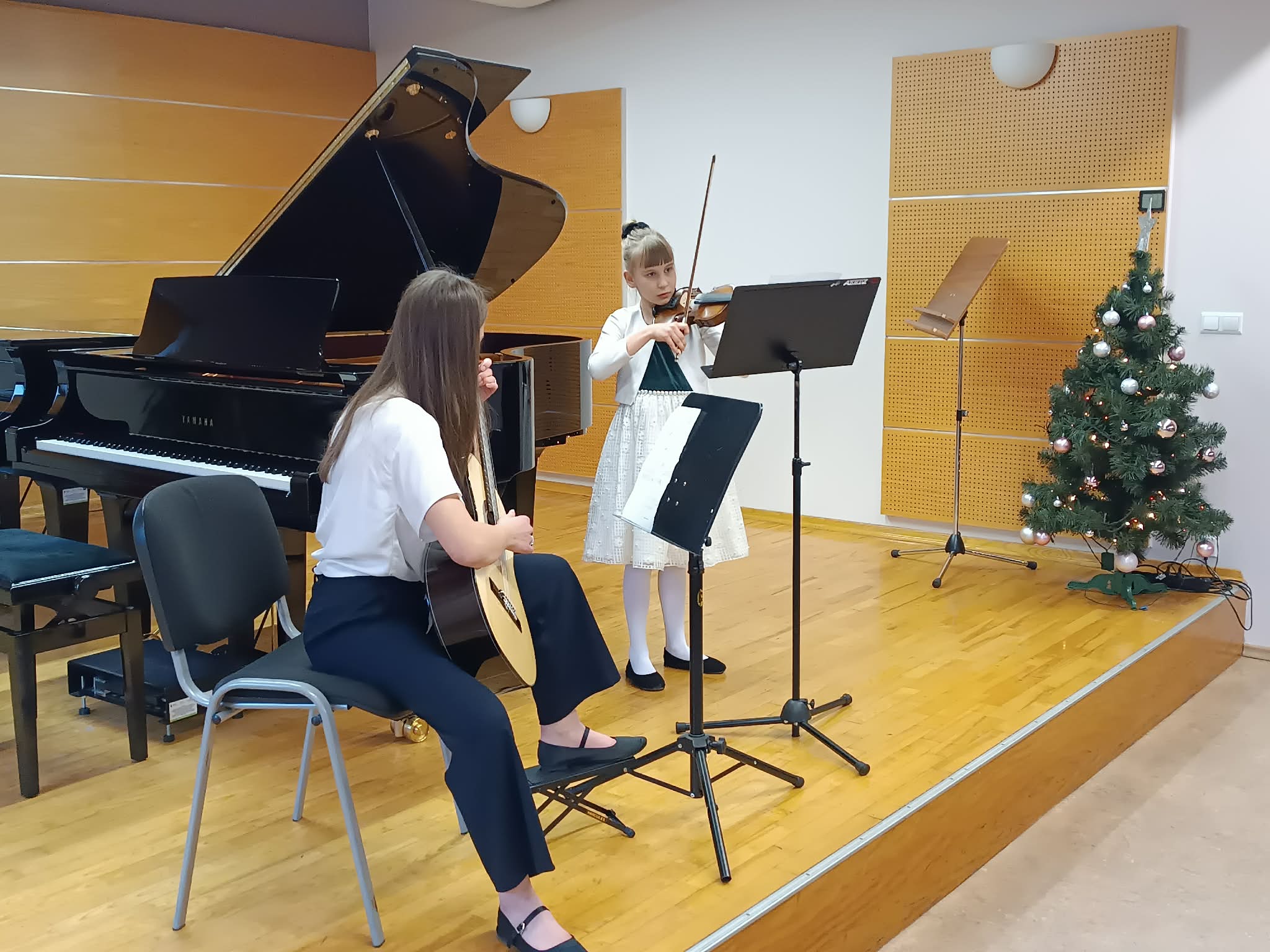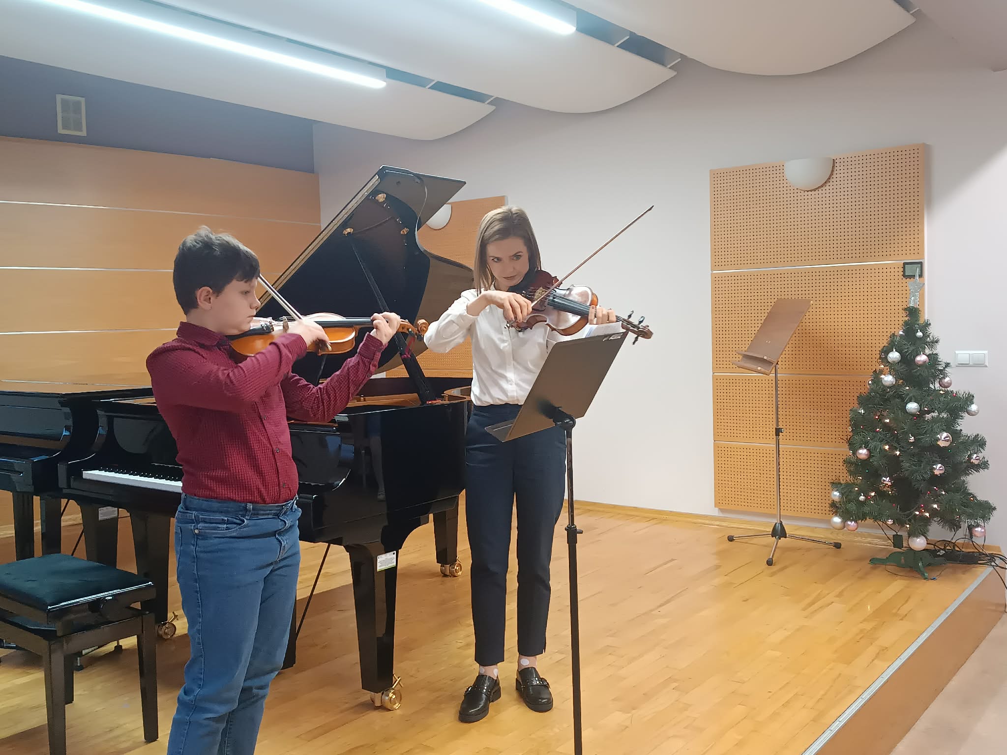 Za nami wyjątkowe wydarzenie pełne świątecznej atmosfery i talentu naszych młodych artystów. Podczas audycji kolędowej sala kameralna wypełniła się dźwiękami i zyskała wyjątkowy blask. Młodzi artyści zadbali o uroczysty wizerunek, prezentując się w eleganckich strojach podkreślających wagę wydarzenia.