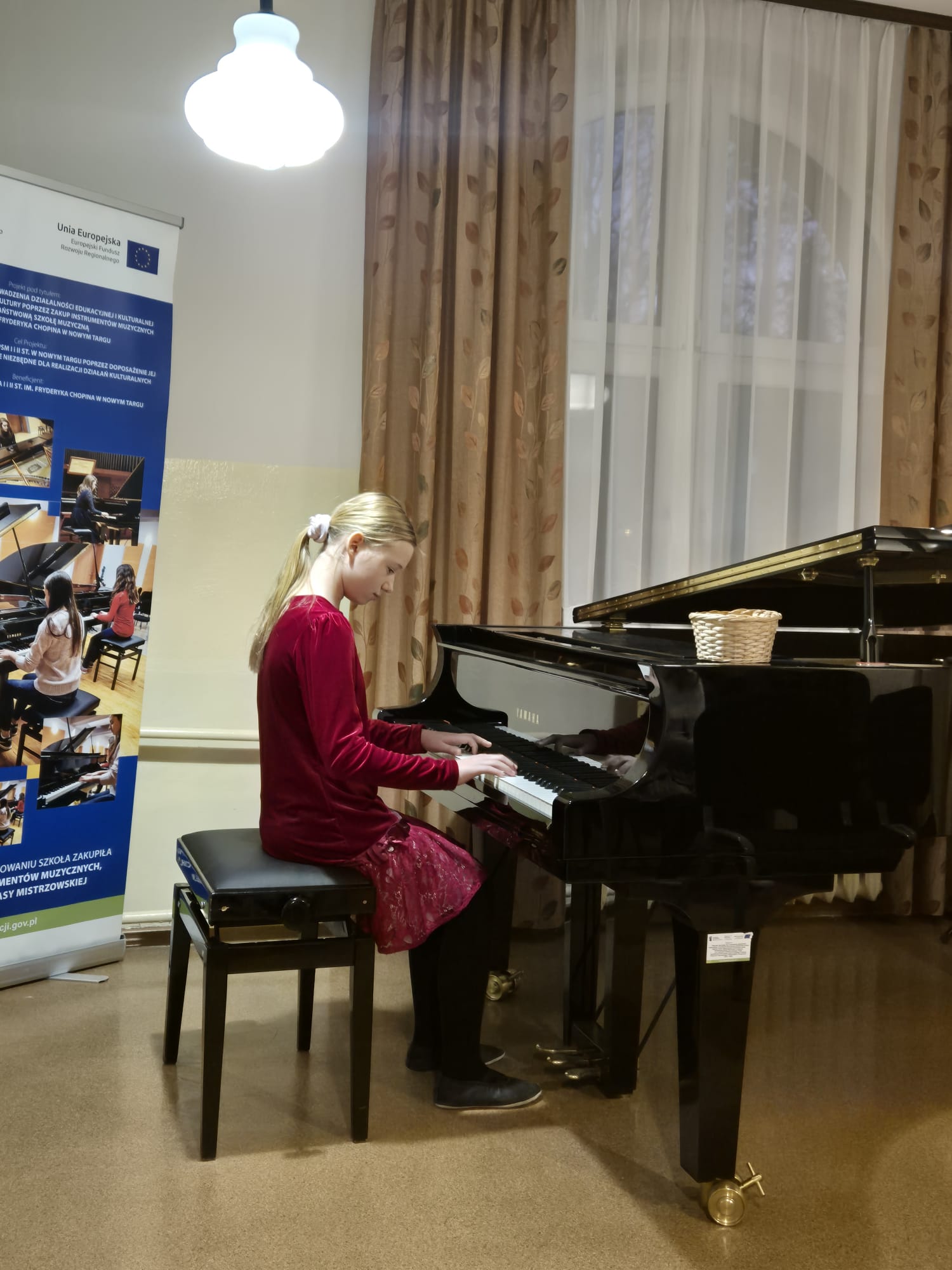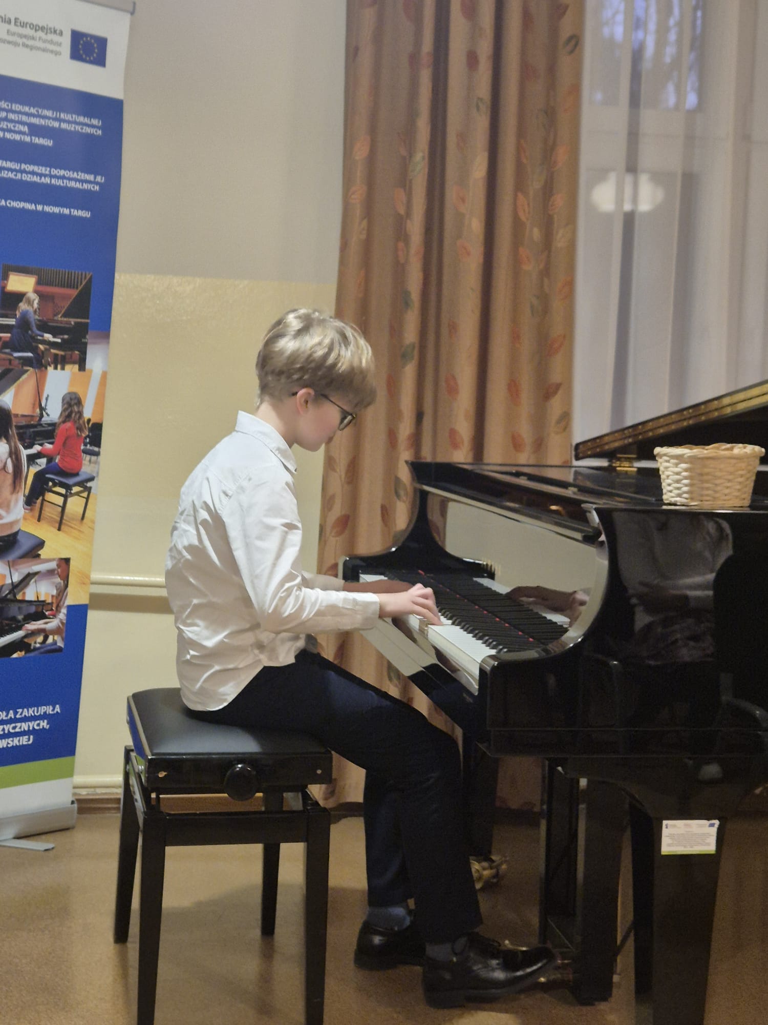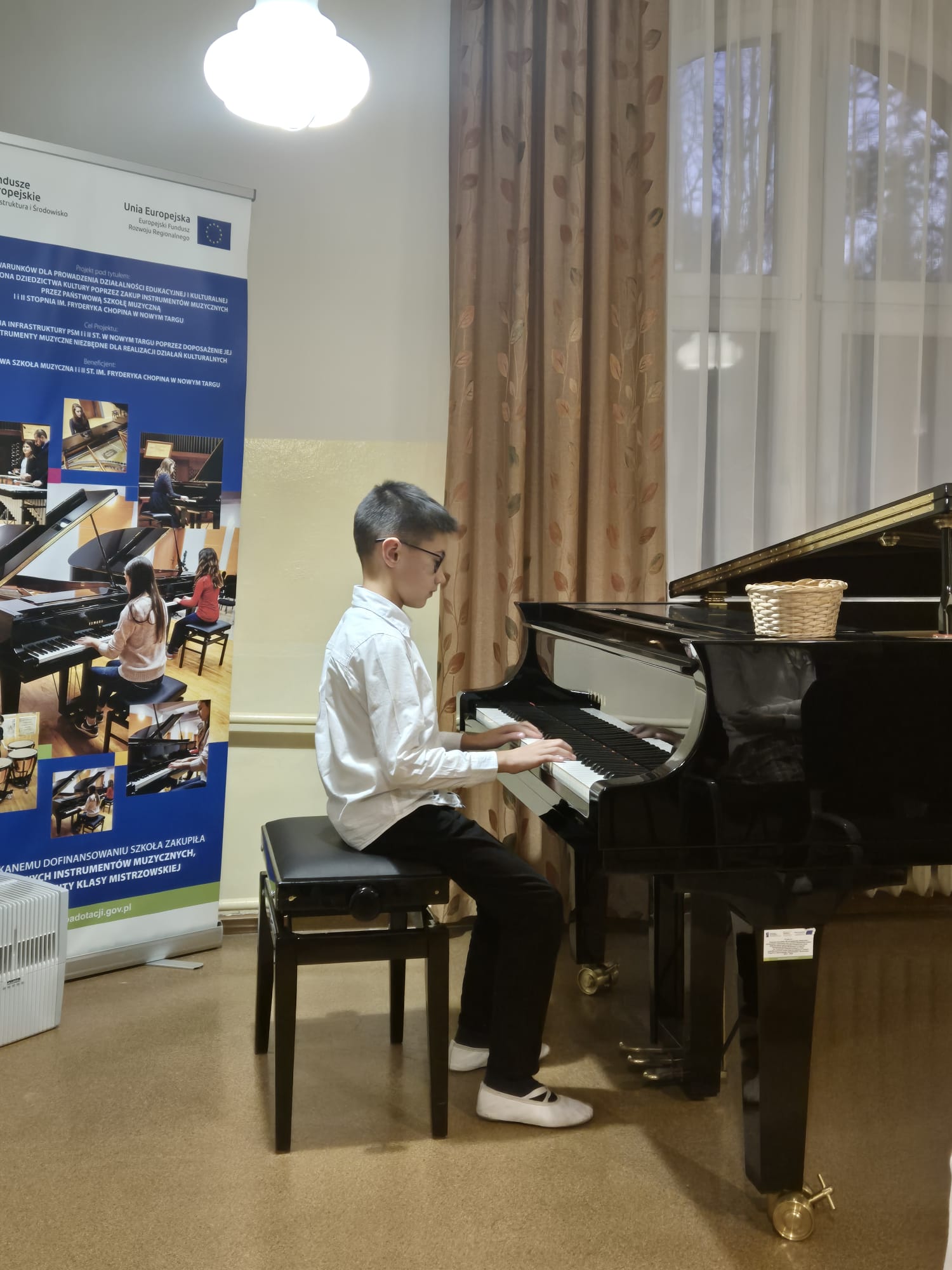 To wydarzenie było pokazem talentu i pracy uczniów klasy fortepianu Pani Alicji Krupowskiej. Na zdjęciach widać pasję, ogromne skupienie oraz elegancję, które towarzyszyły każdemu występowi przy fortepianie.