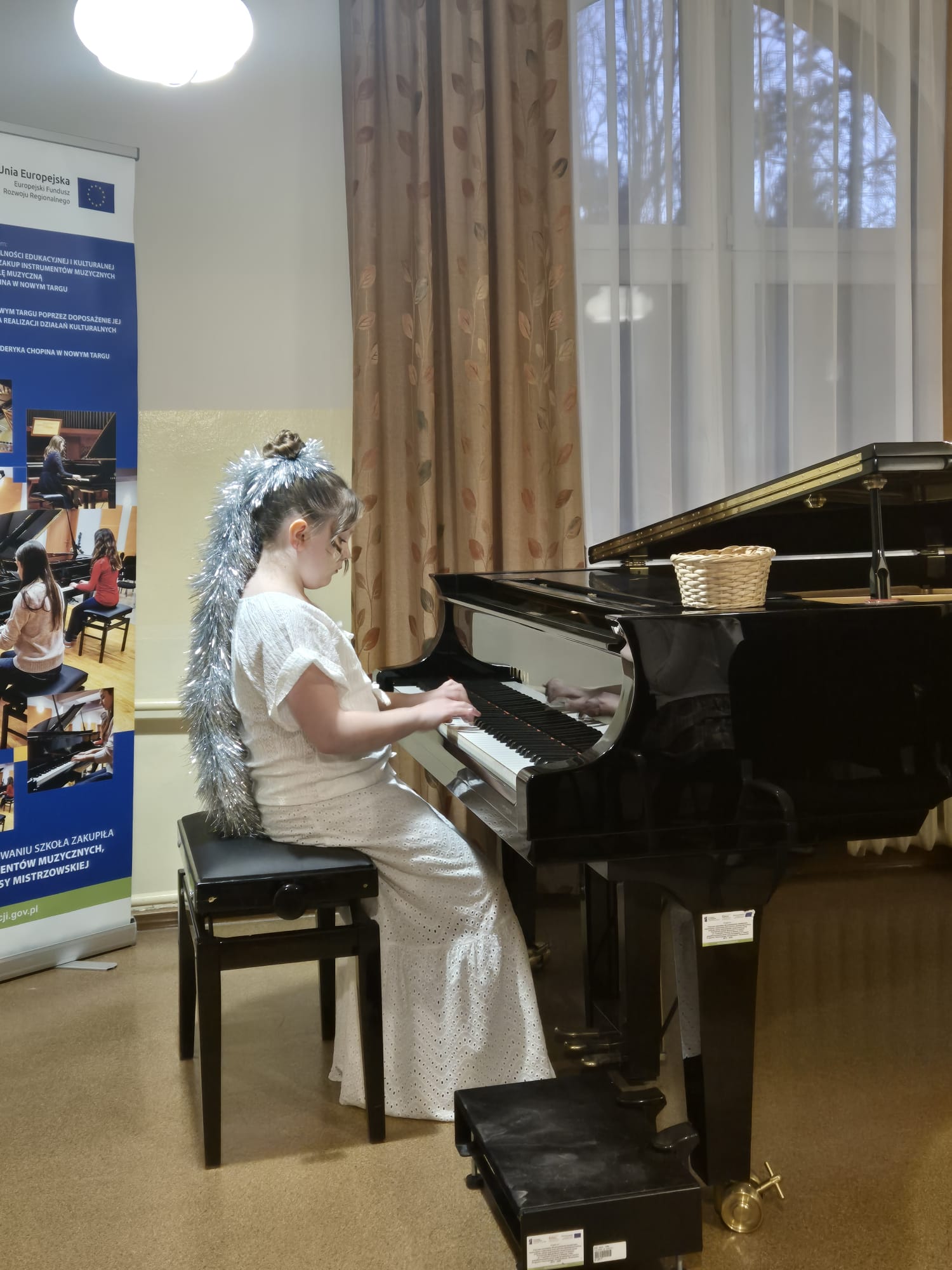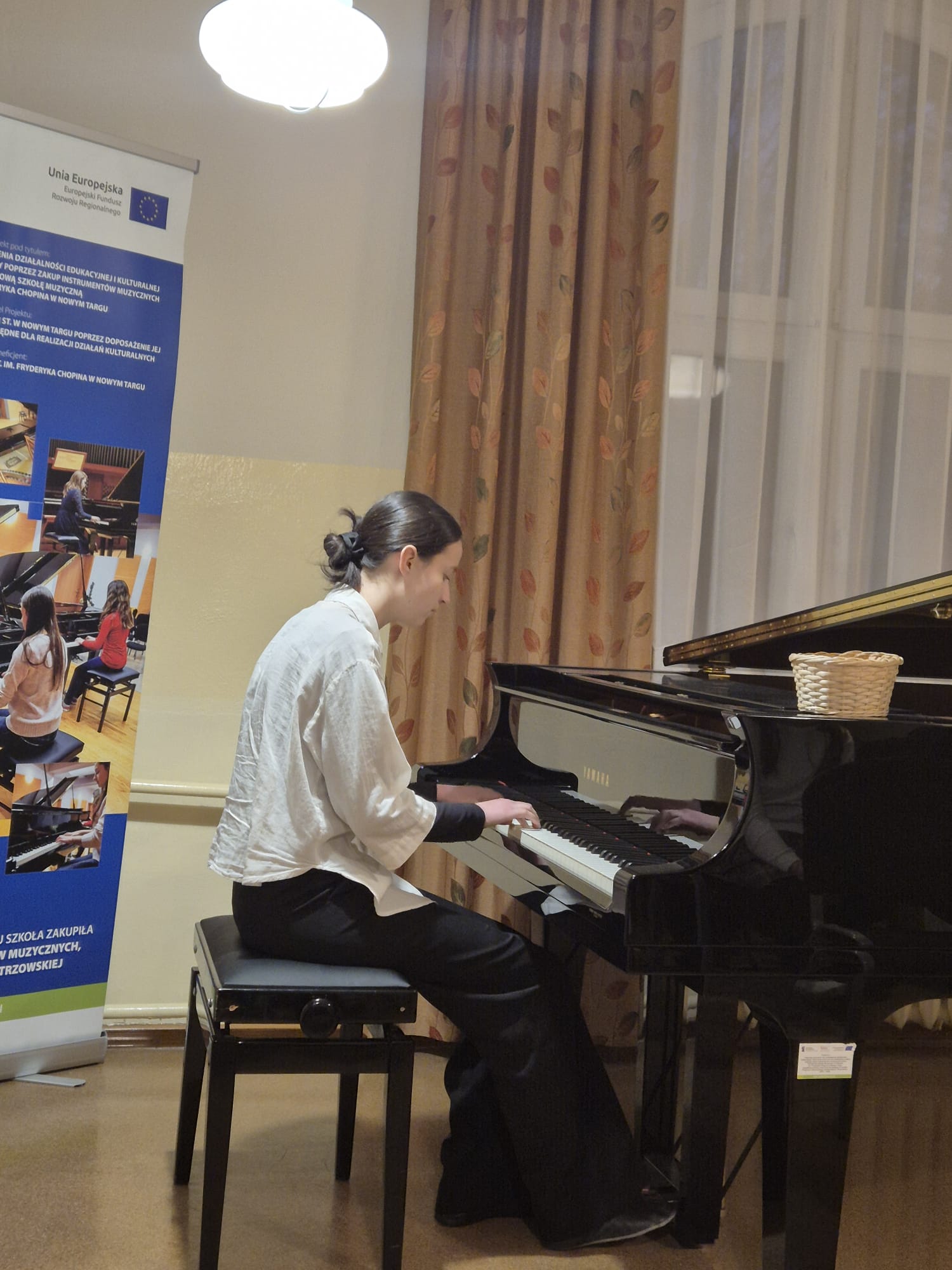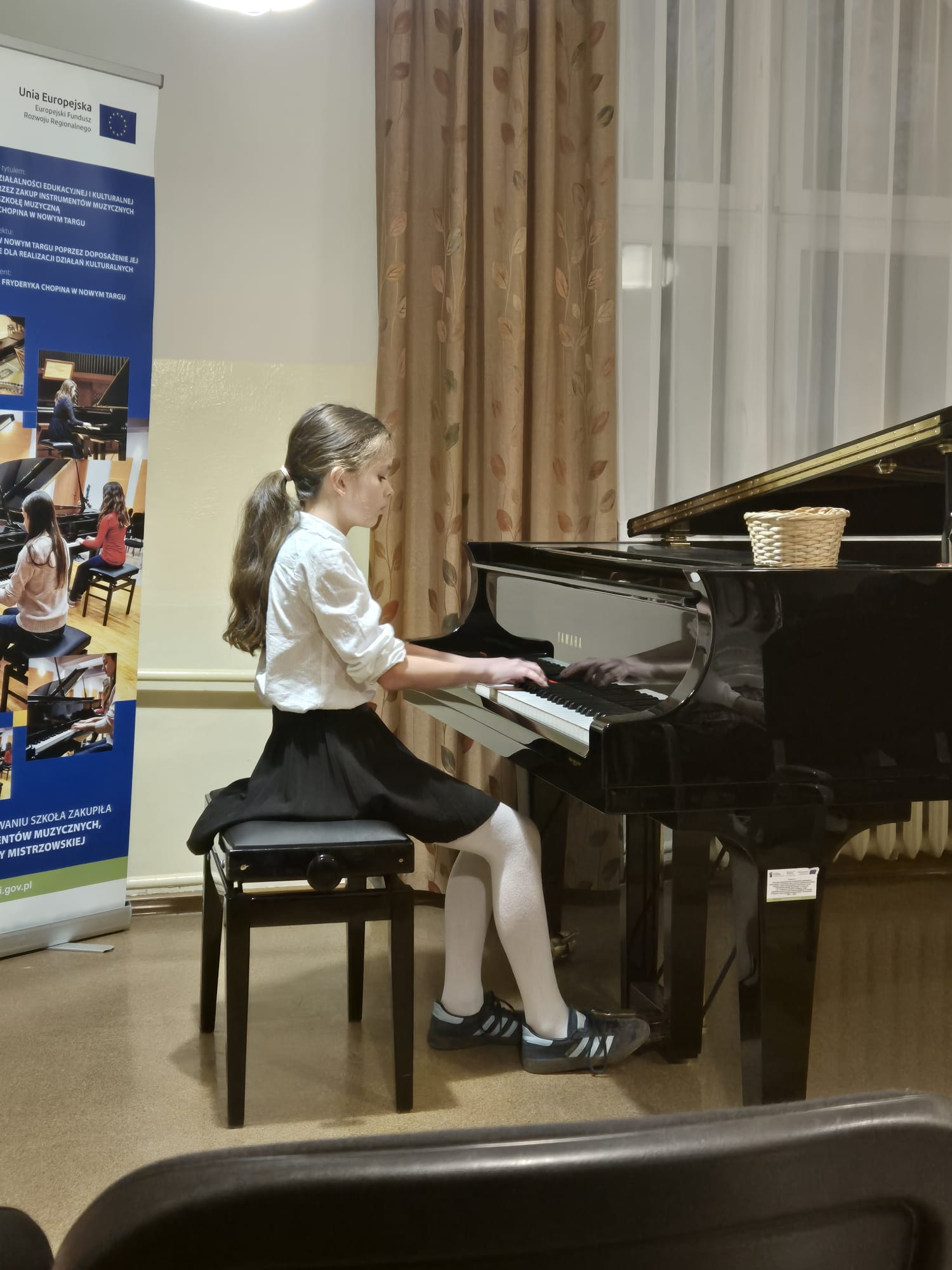 To wydarzenie było pokazem talentu i pracy uczniów klasy fortepianu Pani Alicji Krupowskiej. Na zdjęciach widać pasję, ogromne skupienie oraz elegancję, które towarzyszyły każdemu występowi przy fortepianie.