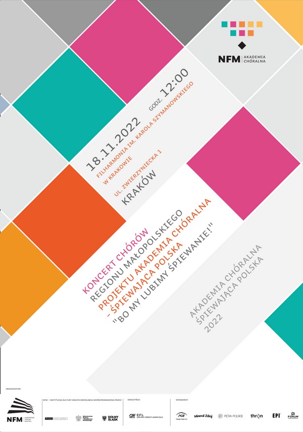 Serdecznie zapraszamy na koncert "Bo my lubimy śpiewanie", w którym weźmie udział orkiestra pod dyr. Pani dyrektor Marty Łapczyńskiej i chór dziecięcy pod dyr. Pani Kseni Miśkiewicz. Koncert odbędzie się w Filharmonii Krakowskiej 18 listopada br. o godzinie 12.00