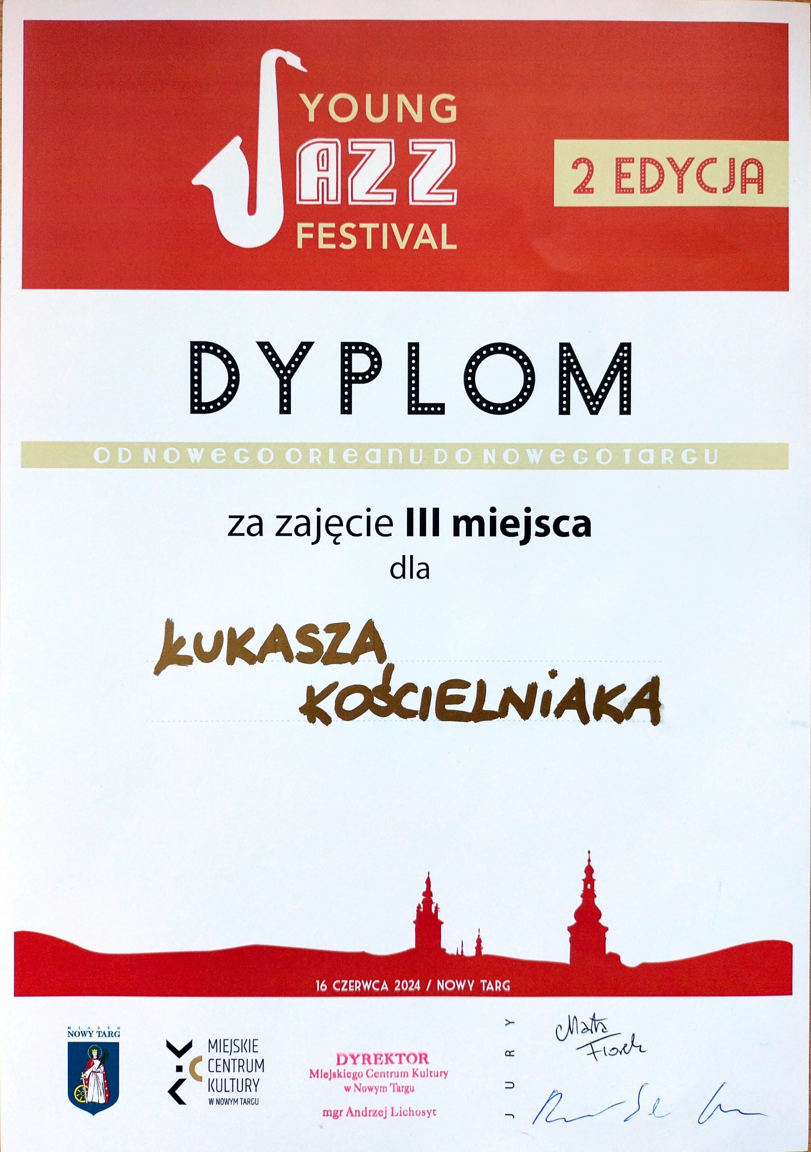 Z radością informujemy, że Łukasz Kościelniak z klasy akordeonu Pana Tomasza Więcka zajął III miejsce w drugiej edycji Young Jazz Festival - od Nowego Orleanu do Nowego Targu