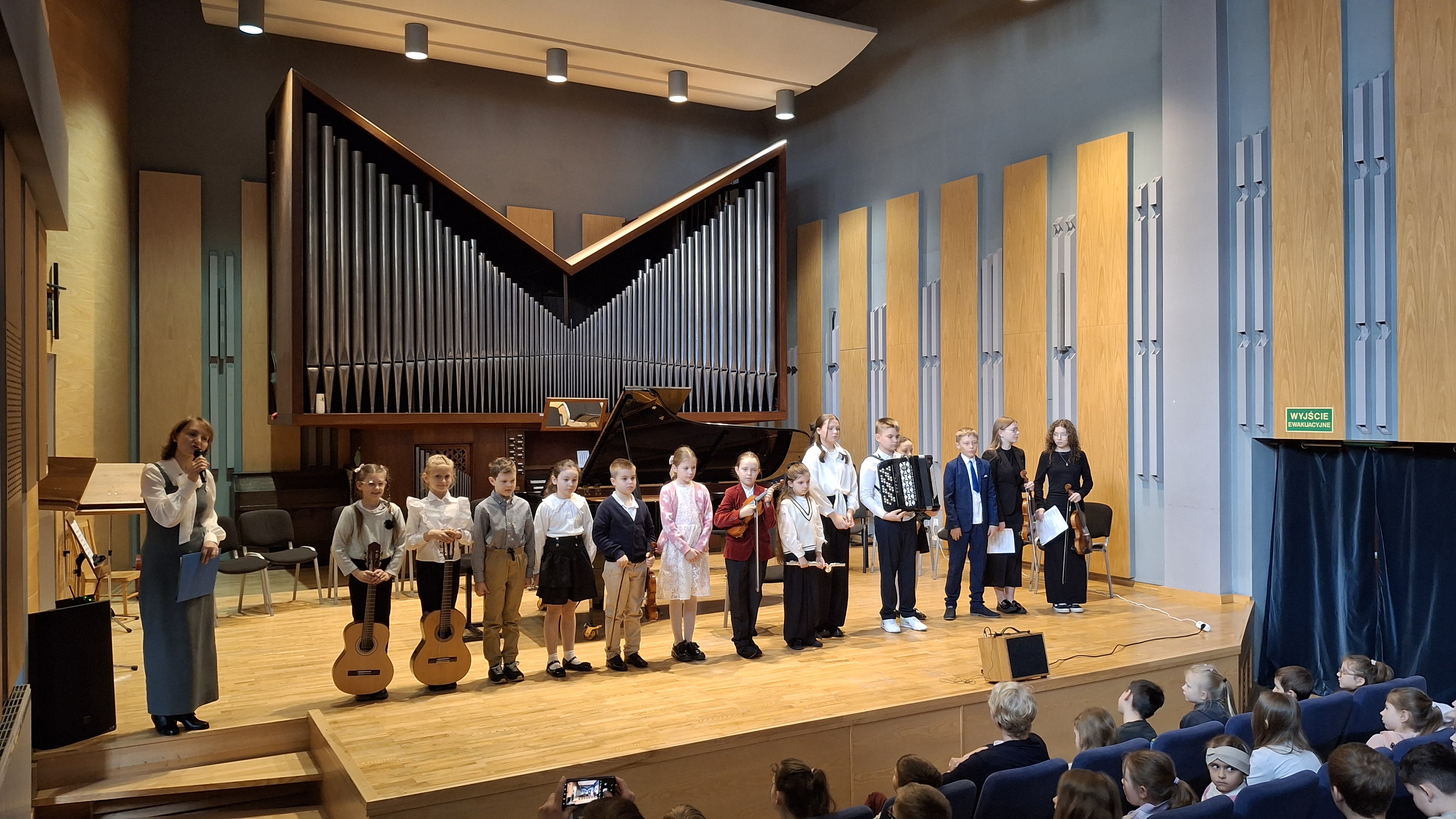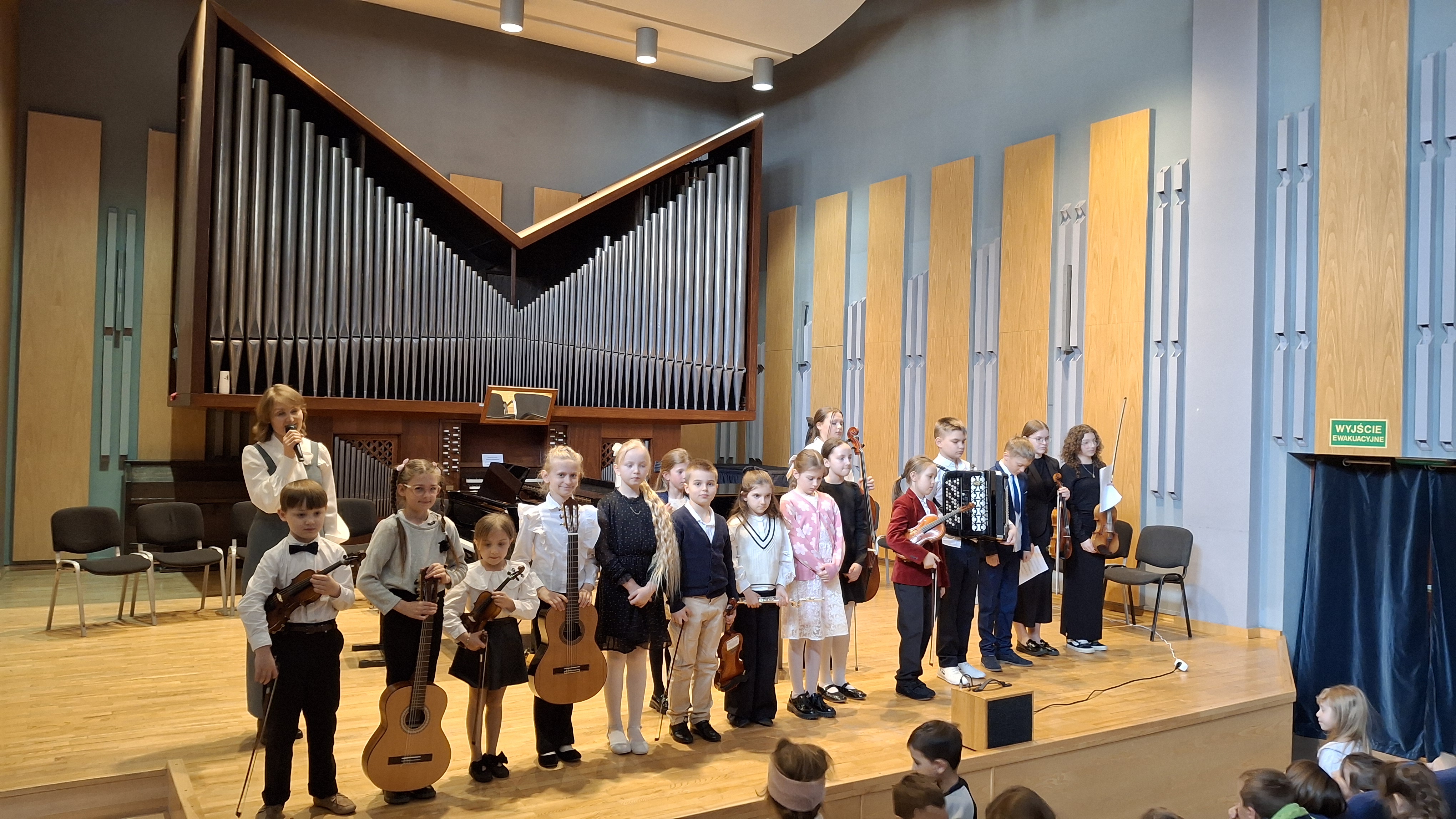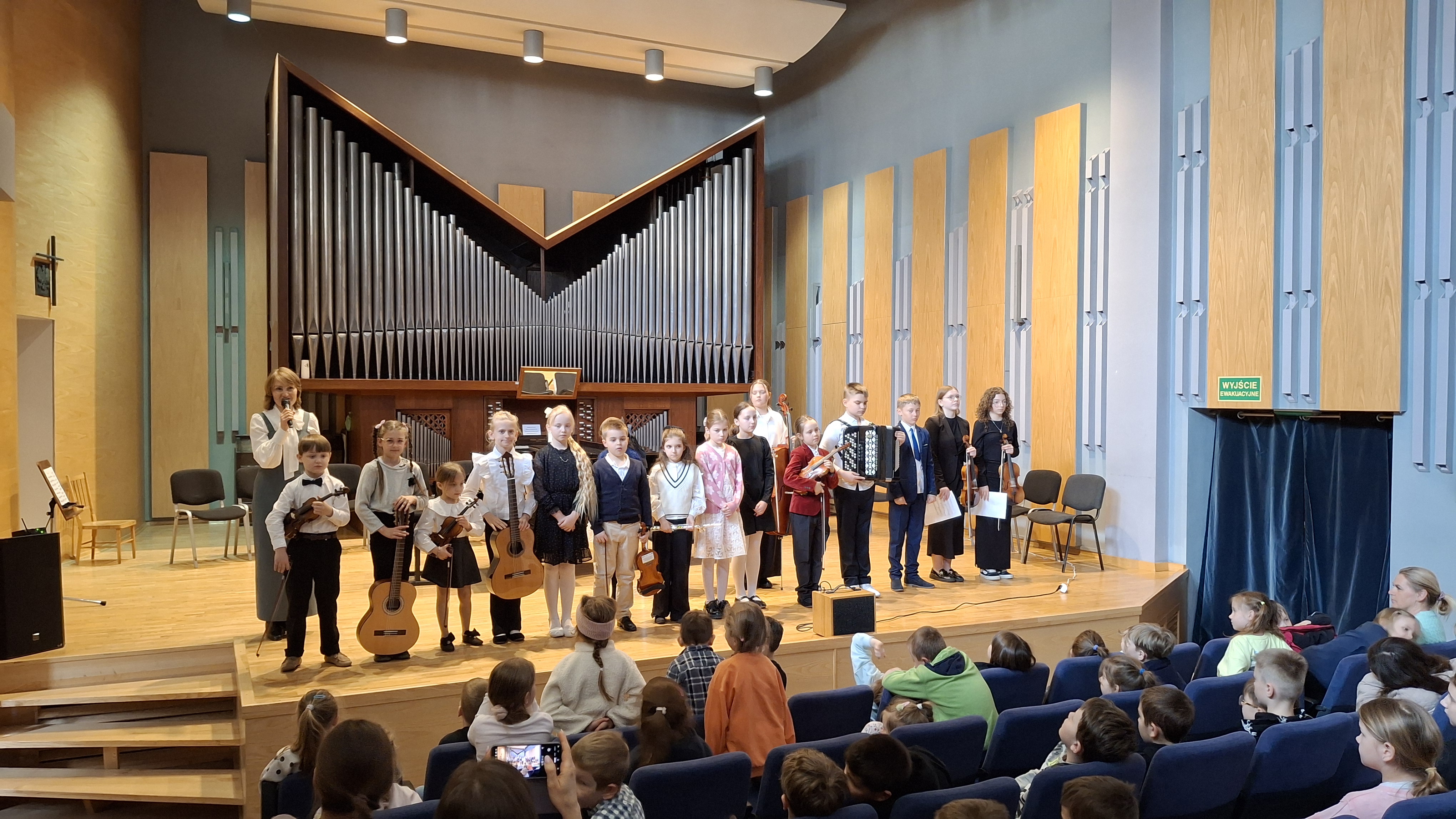 Co działo się na scenie? Bogactwo instrumentarium: Nasi młodzi artyści wystąpili z gitarami klasycznymi, skrzypcami oraz akordeonem. Imponująca oprawa: Występy odbywały się na tle majestatycznych organów piszczałkowych, co dodało wydarzeniu podniosłego charakteru. Lekcja muzyki na żywo: Prowadząca koncert wprowadziła słuchaczy w tajniki prezentowanych instrumentów, opowiadając o ich budowie i możliwościach technicznych. Tego typu spotkania to nie tylko pokaz umiejętności naszych wychowanków, ale przede wszystkim wspaniała forma promocji edukacji artystycznej. Mamy nadzieję, że zaprezentowane utwory zainspirują naszych gości do rozpoczęcia własnej przygody z instrumentem.