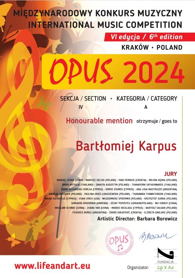 Bartłomiej Karpus - wyróżnienie
