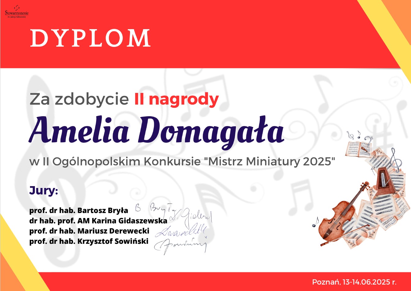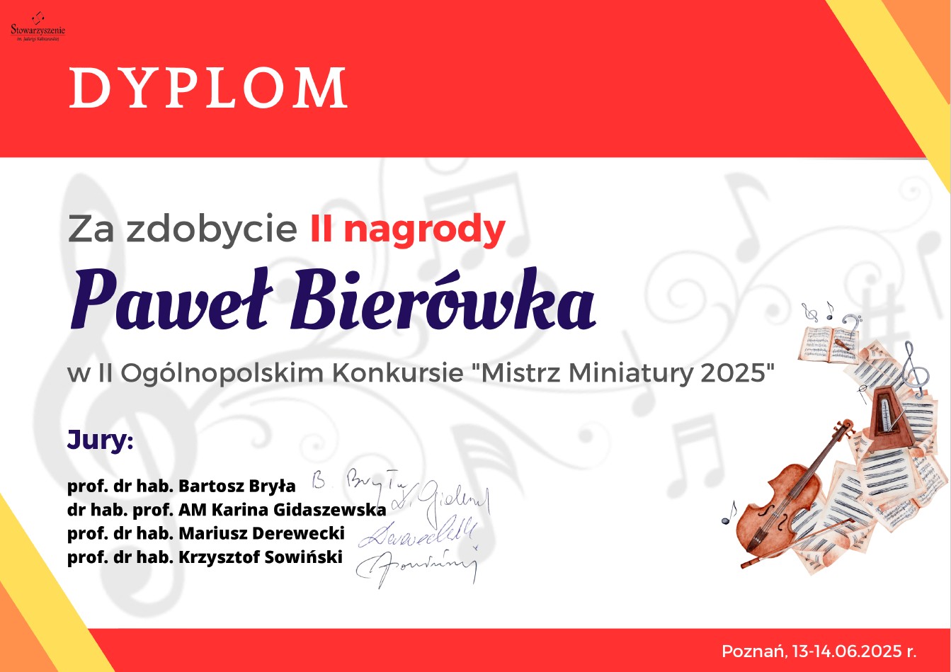 Jesteśmy niezmiernie dumni z Waszych osiągnięć. Pokazaliście prawdziwe mistrzostwo w sztuce miniatury fortepianowej, wzbogacając tym samym artystyczny dorobek naszej szkoły.