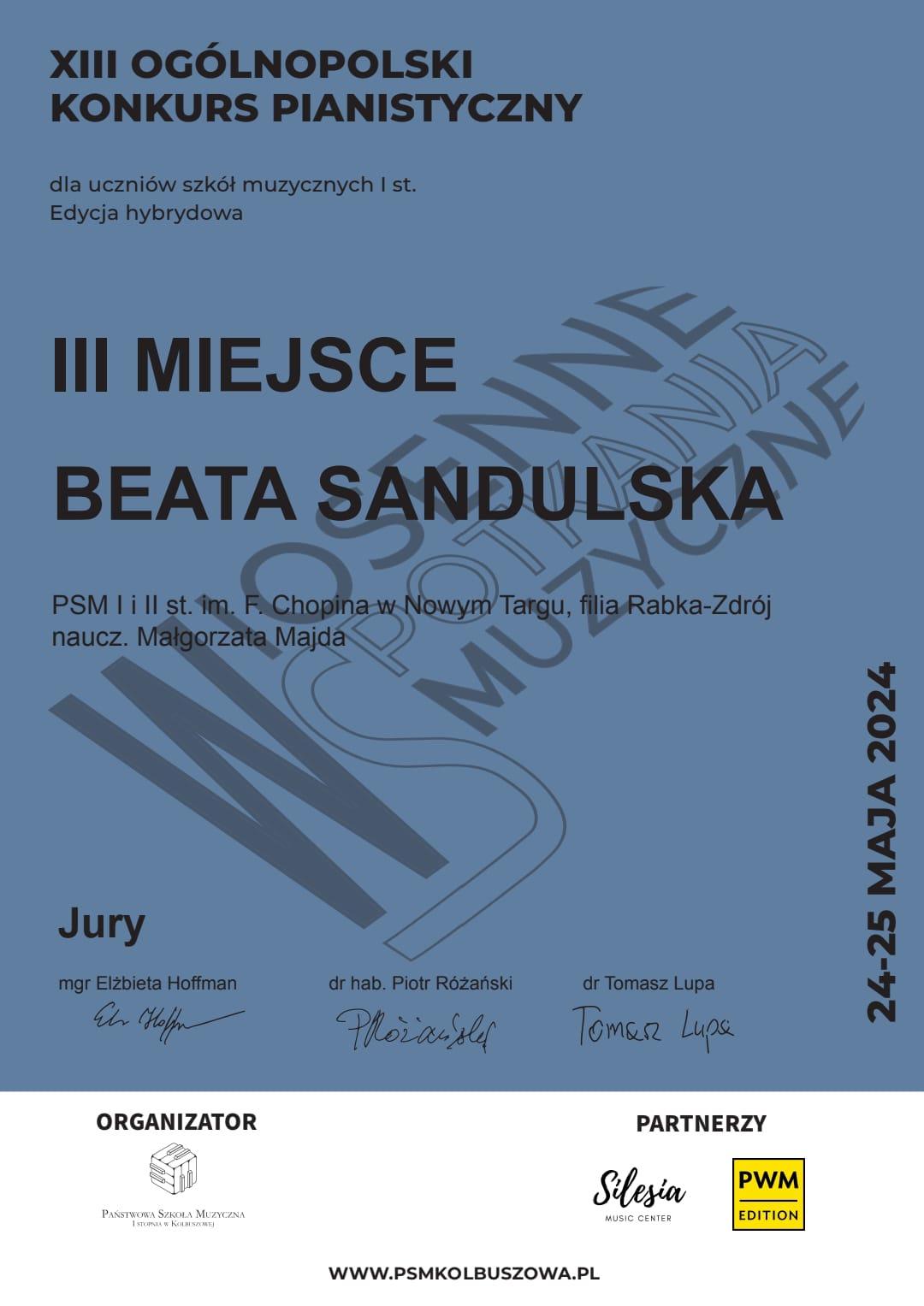 Beata Sandulska  - III miejsce