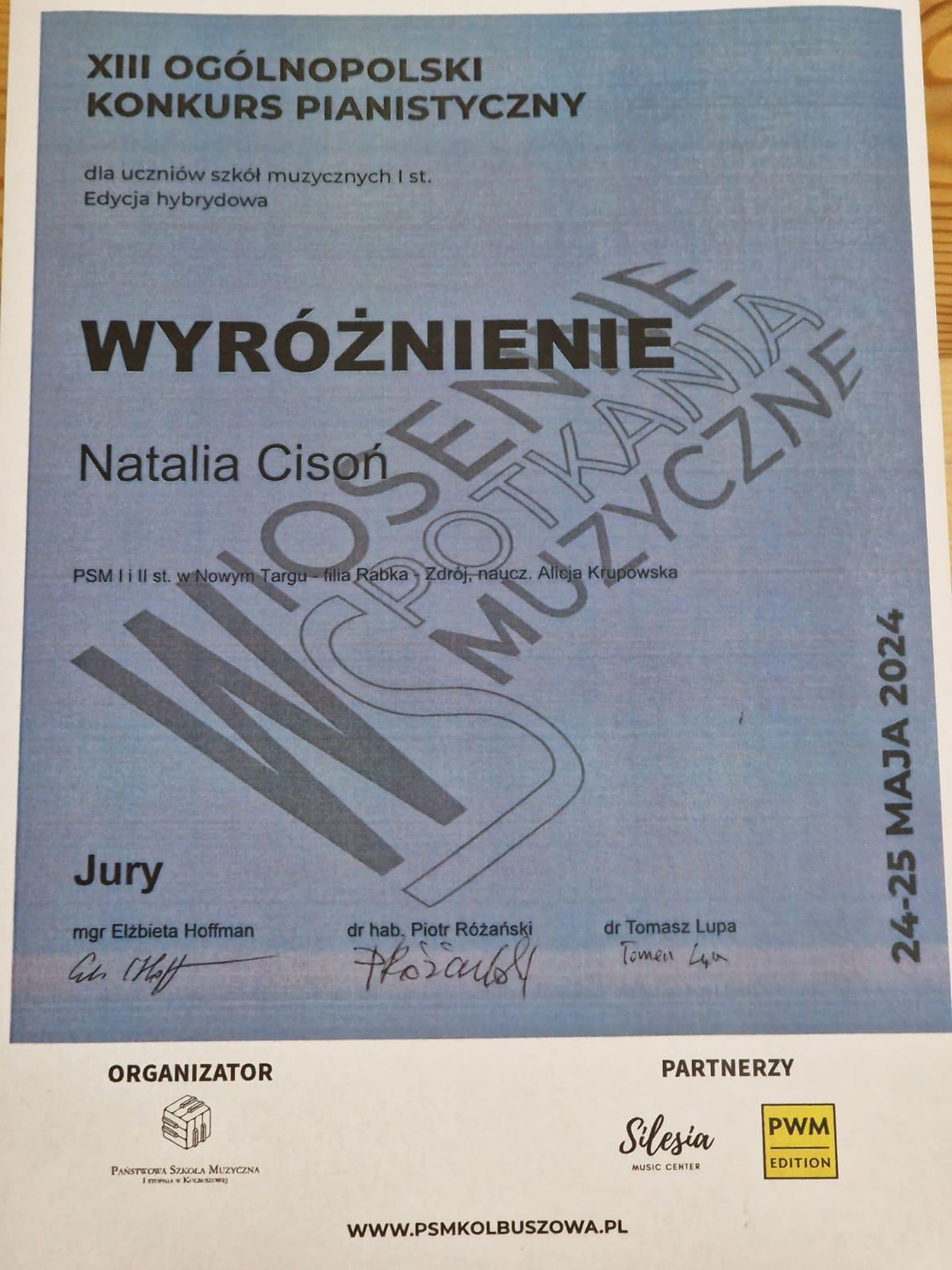Natalia Cisoń - wyróżnienie - grupa I