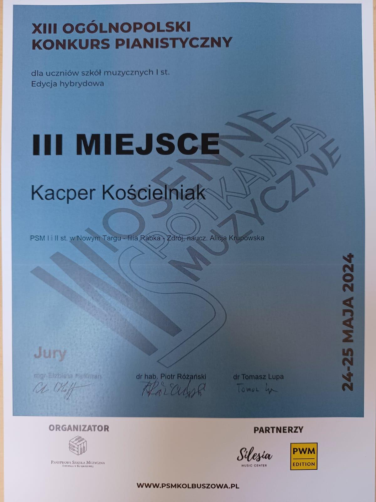 Kacper Kościelniak - III miejsce - grupa II
