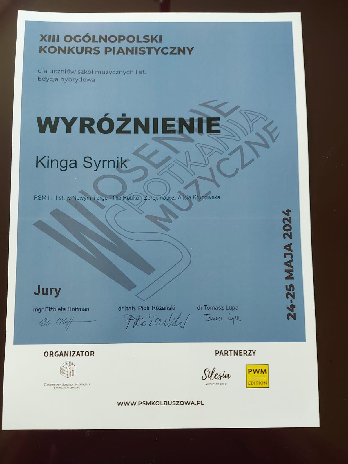 Kinga Syrnik - wyróżnienie - grupa III