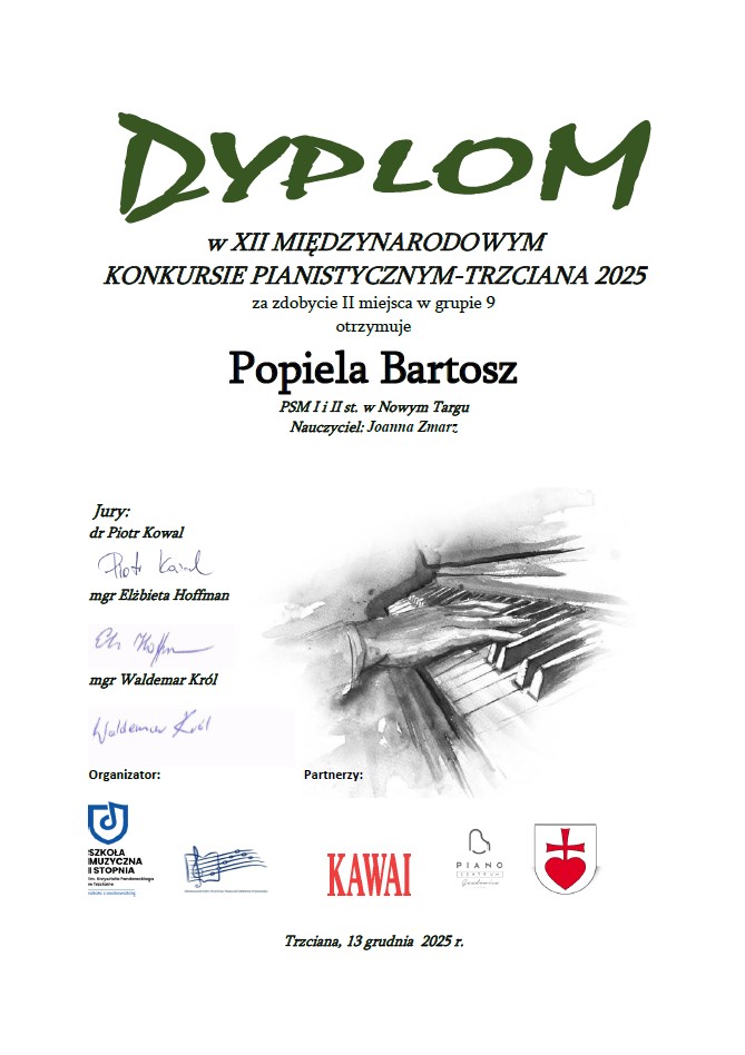 XII Międzynarodowego Konkursu Pianistycznego, który odbył się w dniach 12–14 grudnia 2025 r. w Trzcianie.