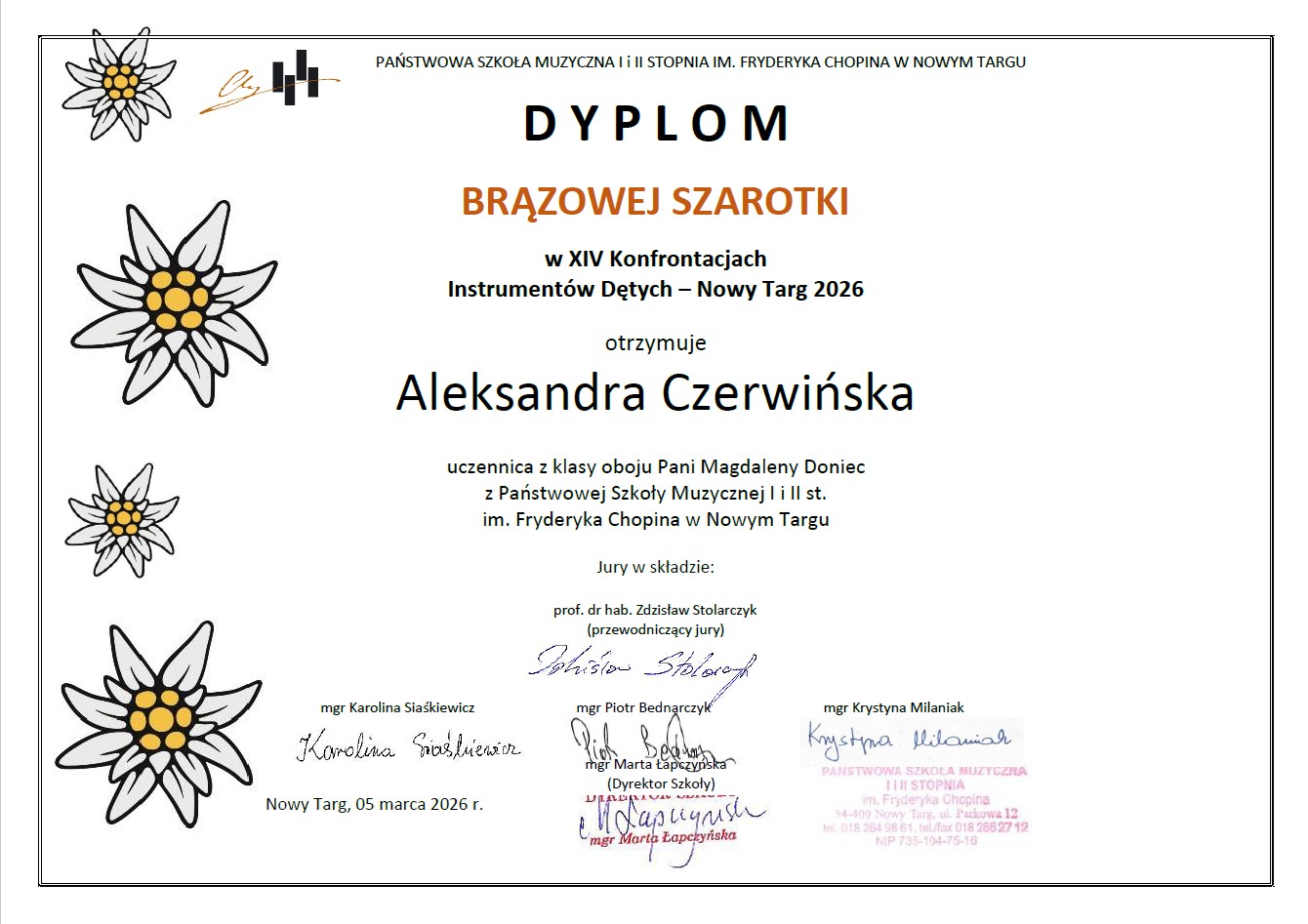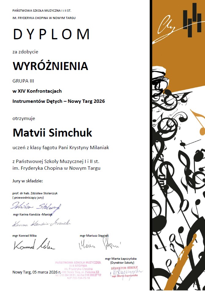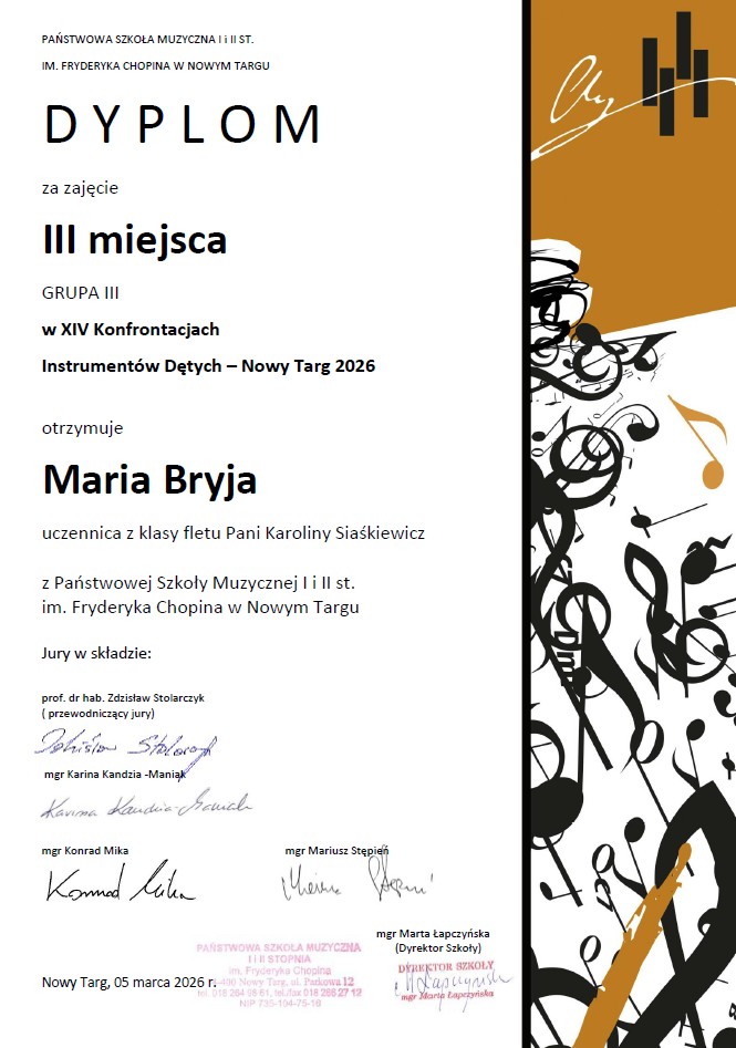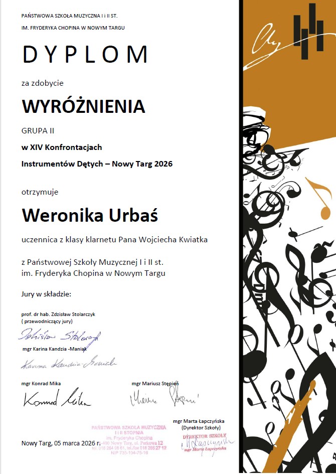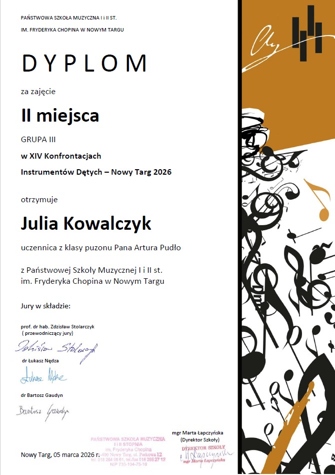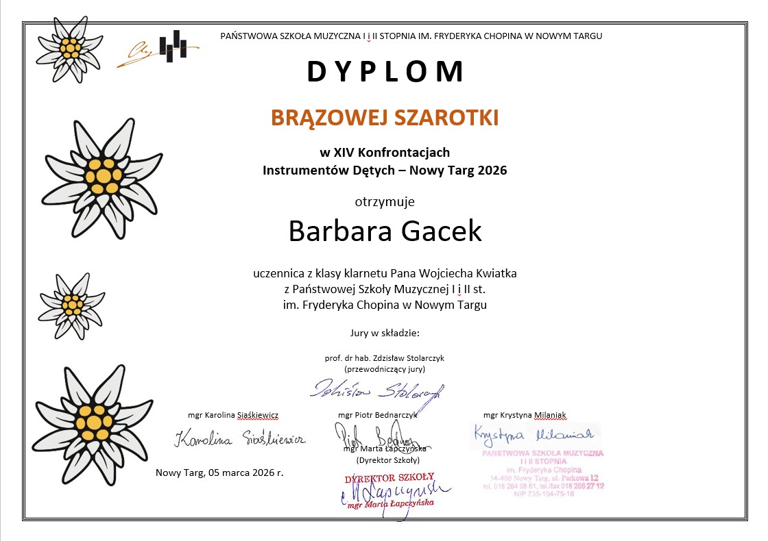 Osiągnięcia uczniów w XIV Konfrontacjach Instrumentów Dętych - Nowy Targ 2026