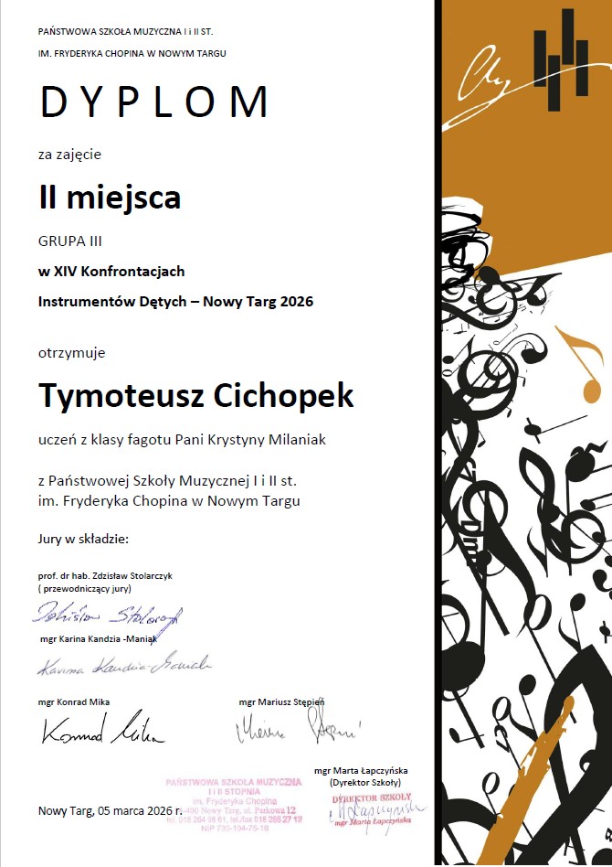 Tymoteusz Cichopek – II miejsce (fagot)