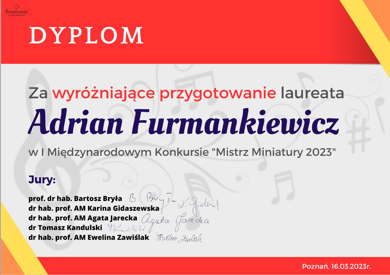 Osiągnięcia w konkursie " Mistrz Miniatury 2023" 06.03.2023 Zdjęcia (8) Pokaż poprzednie zdjęcia Pokaż zdjęcie 1 z galerii. Pokaż zdjęcie 2 z galerii. Pokaż zdjęcie 3 z galerii. Pokaż zdjęcie 4 z galerii. Pokaż zdjęcie 5 z galerii. Pokaż zdjęcie 6 z galerii. Pokaż zdjęcie 7 z galerii. Pokaż zdjęcie 8 z galerii. Pokaż nestępne zdjęcia