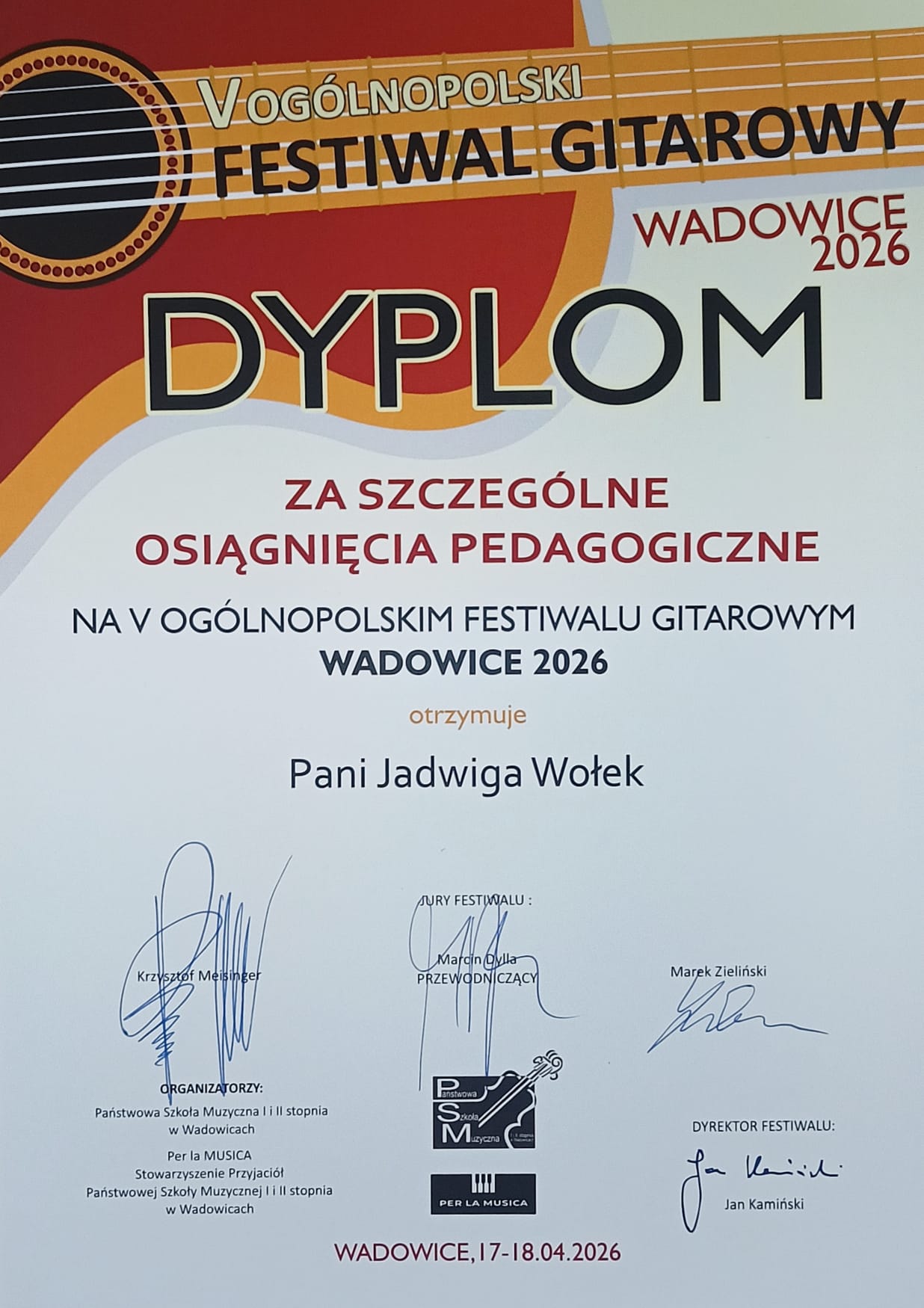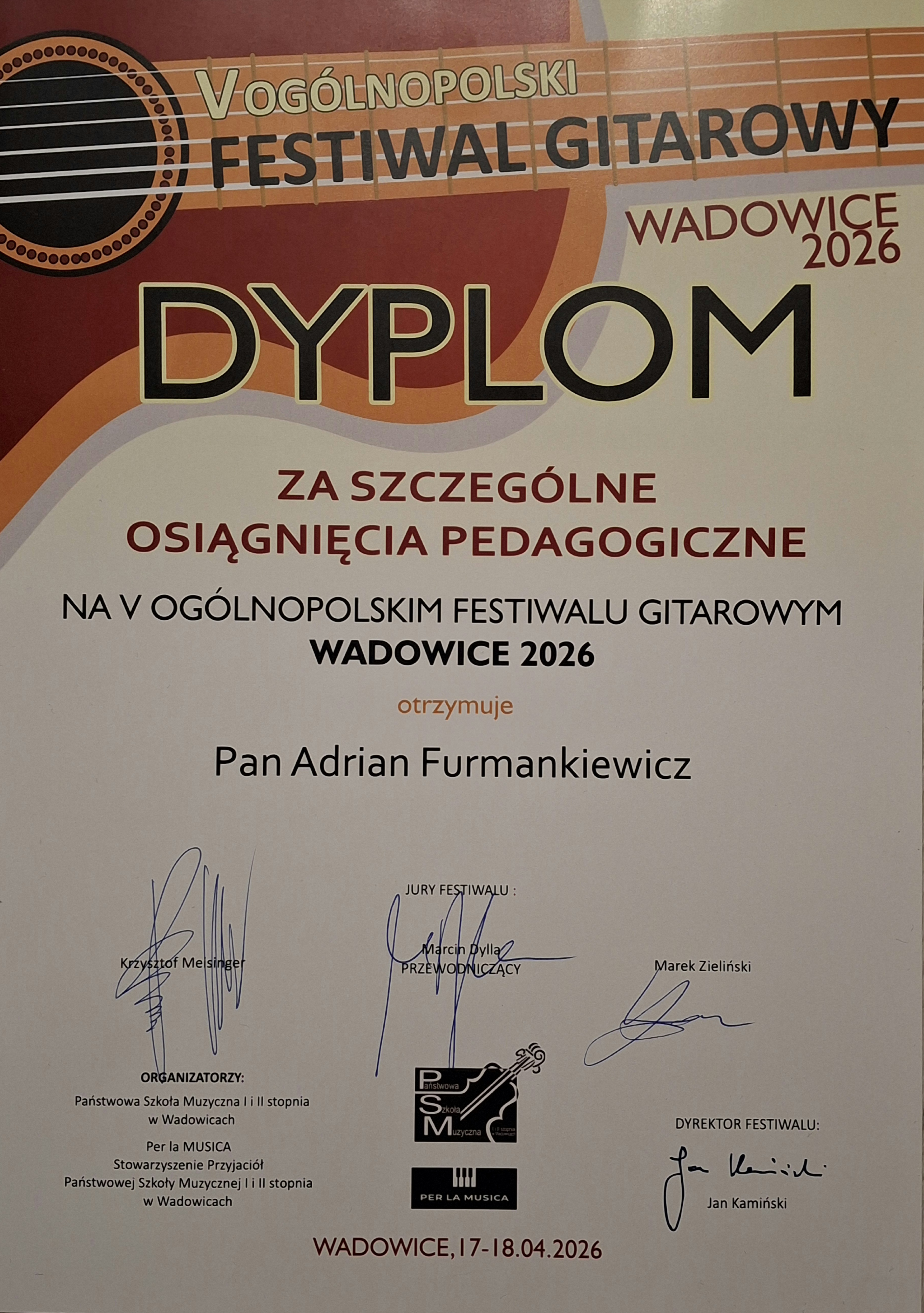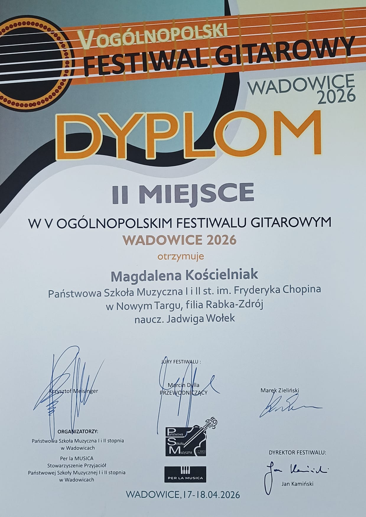 Wspaniałe wieści prosto z estrady V Ogólnopolskiego Konkursu Gitarowego w Wadowicach! 🎸🎶