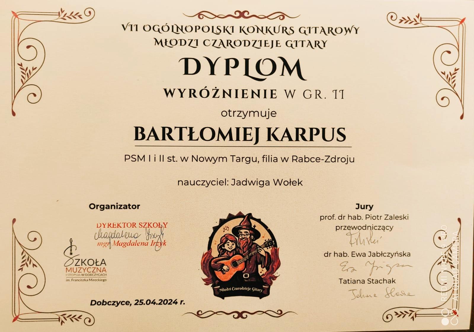 Bartłomiej Karpus WYRÓŻNIENIE