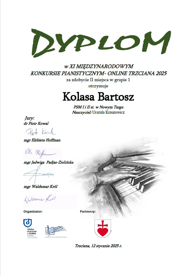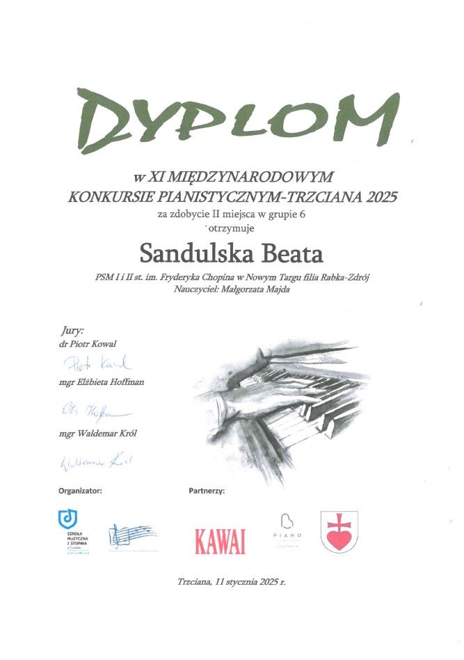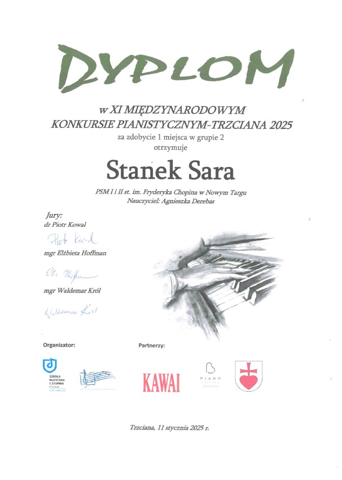 Z radością informujemy, iż podczas XI Międzynarodowego Konkursu Pianistycznego w Trzcianie nasi uczniowie zdobyli następujące lokaty: