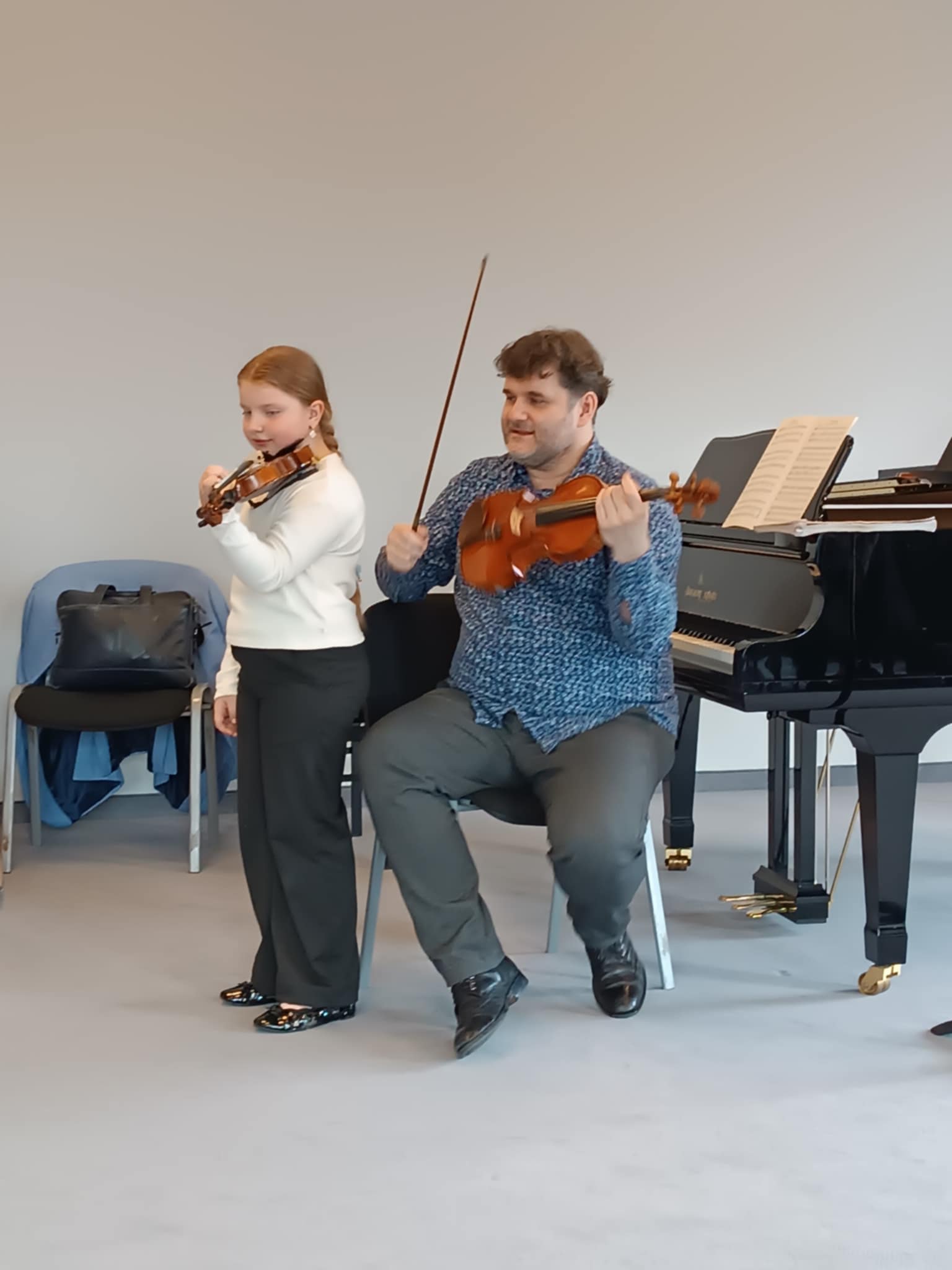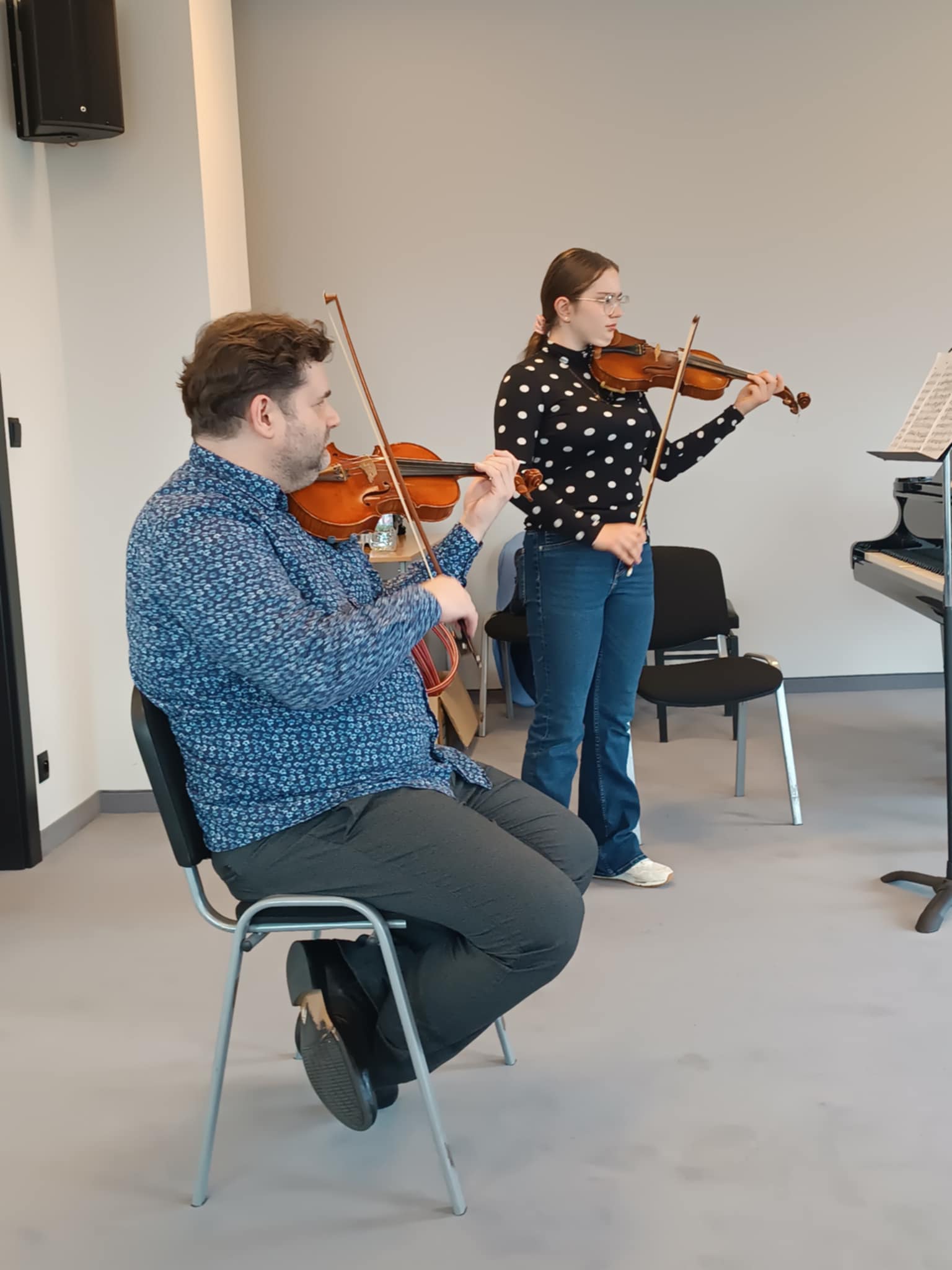 Z całego serca dziękujemy Panu adt dr hab. Adamowi Mokrusowi za przeprowadzenie inspirujących warsztatów skrzypcowych. Pańska pasja, zaangażowanie oraz niezwykła umiejętność dzielenia się wiedzą sprawiły, że uczestnicy warsztatów nie tylko pogłębili swoje umiejętności techniczne, ale również odkryli nowe pokłady muzycznej wrażliwości.