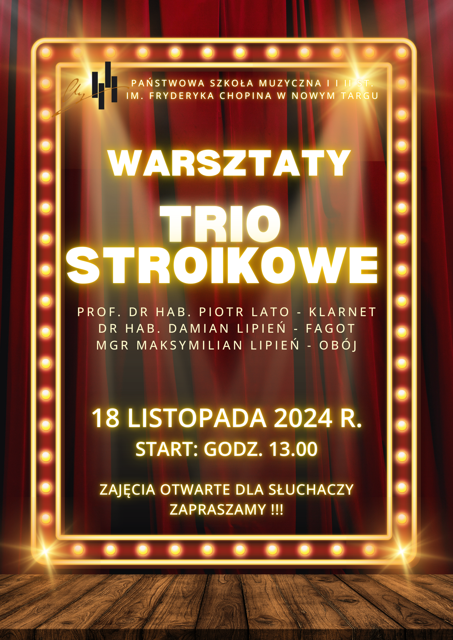 Serdecznie zapraszamy do udziału w warsztatach tria stroikowego, a będzie to wydarzenie w doborowym towarzystwie