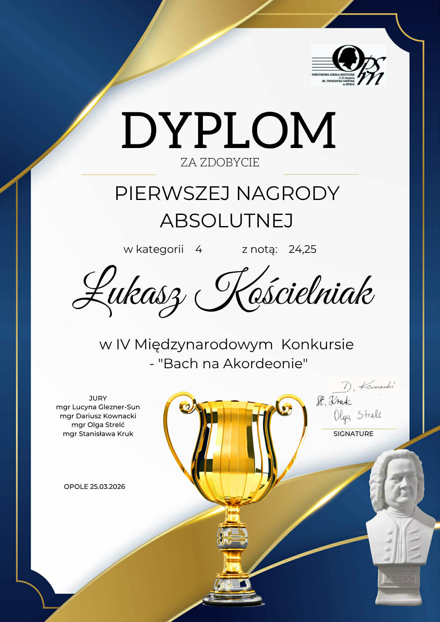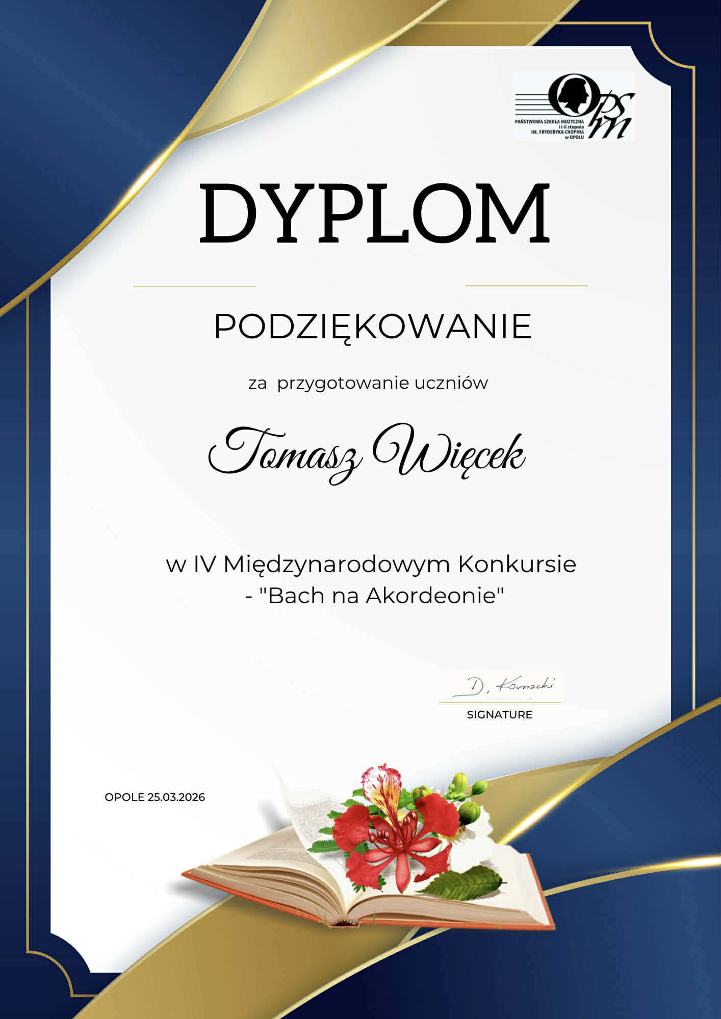 Składamy gorące podziękowania Panu Tomaszowi Więckowi za profesjonalne prowadzenie uczniów oraz Łukaszowi Kościelniakowi i Łukaszowi Dawidkowi za ich trud, talent i godne reprezentowanie naszej szkoły na szczeblu międzynarodowym. Wasze osiągnięcia w Opolu to powód do ogromnej dumy!