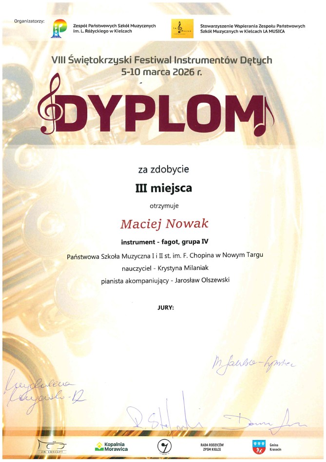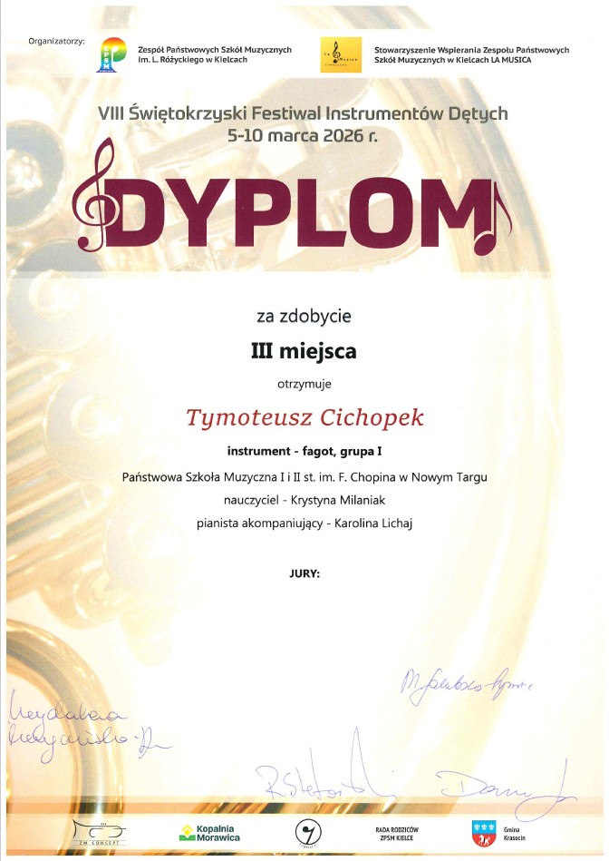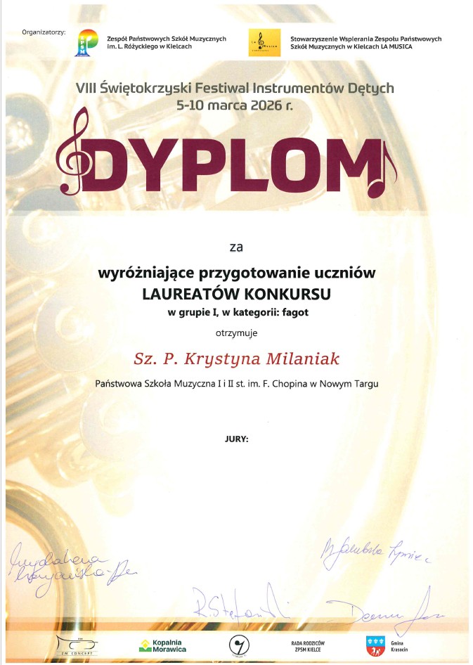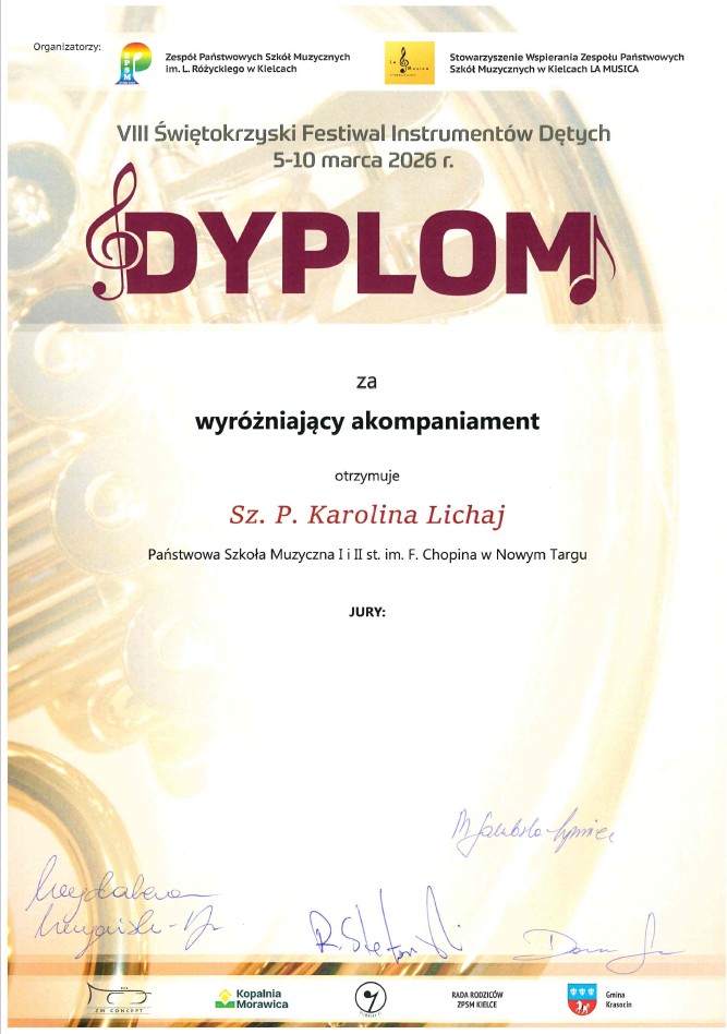 Takie wyniki to dowód na ogromny talent, ale przede wszystkim na godziny ciężkiej pracy i świetną współpracę na linii uczeń-nauczyciel-akompaniator. Życzymy kolejnych sukcesów!