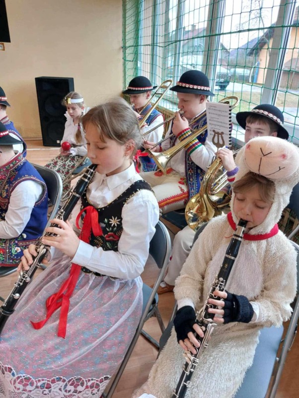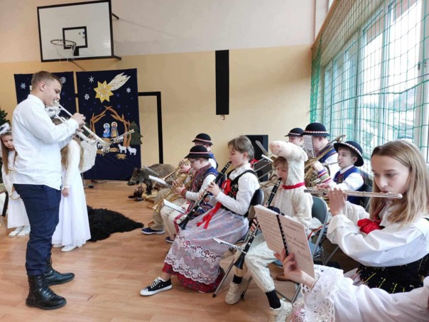 W dniu 20.12.2024 roku uczniowie filii w Jaworkach brali udział w uroczystej Wigilii zorganizowanej przez Szkołę Podstawową nr 2 im. ks. Józefa Tischnera w Szczawnicy, uświetniając muzycznie tą uroczystość