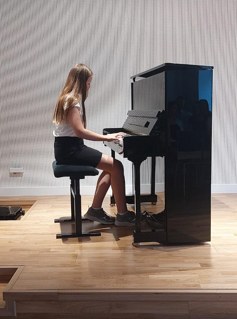Uczniowie wykonali utwory różnych epok i stylów muzycznych, prezentując owoce swojej pracy przed zgromadzoną bliską im publicznością. Trzymamy kciuki za dalsze sukcesy i przygody z muzyką!
