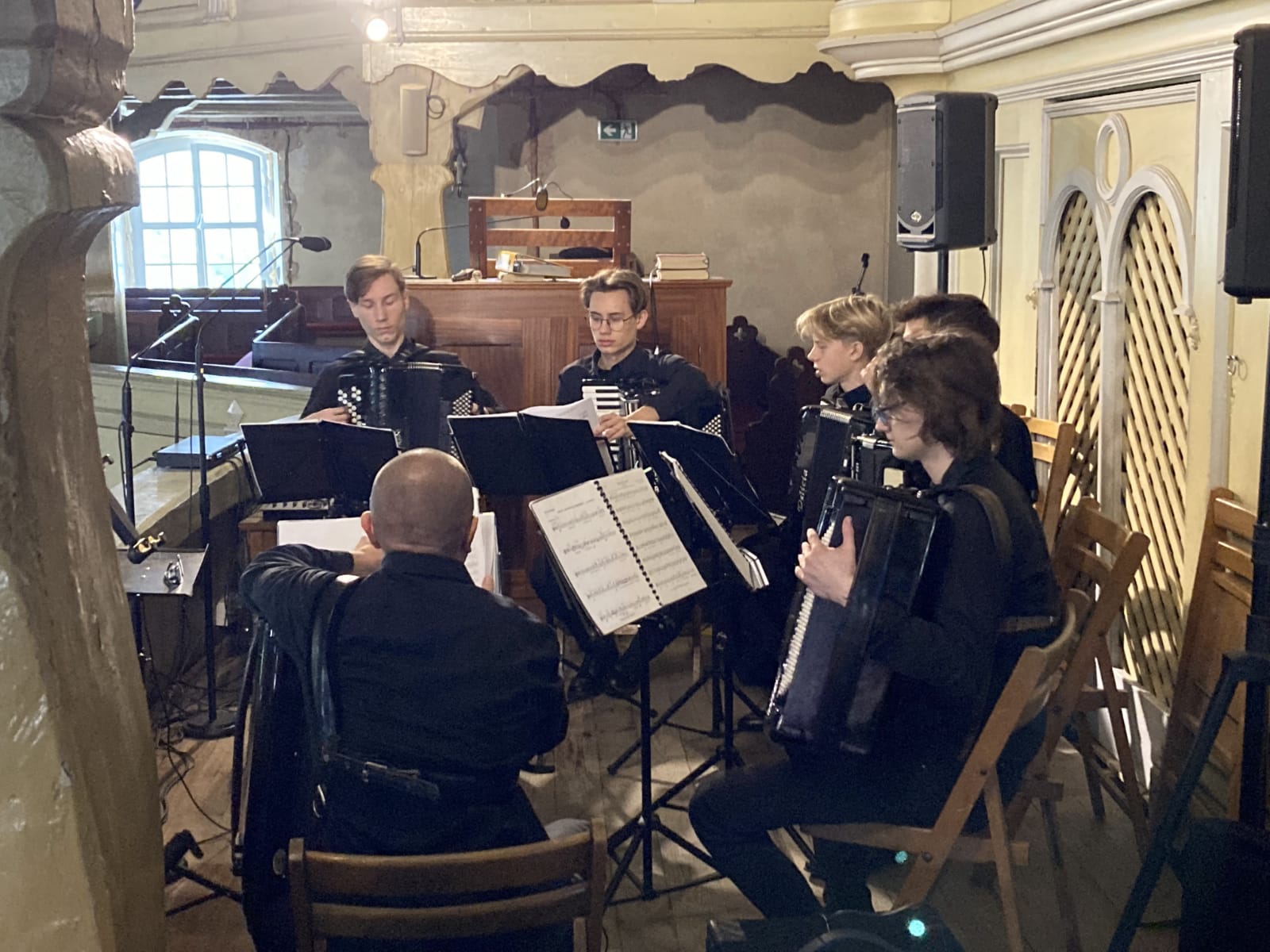 W poniedziałkowe przedpołudnie 4 września 2023 r. Zespół Akordeonowy naszej szkoły prowadzony przez Pana Tomasza Milera wystąpił przed Mszą św. w kościele pw. Najświętszego Serca Pana Jezusa, w ramach uroczystości Wielkopolskiej Inauguracji Roku Szkolnego 2023/24 w Zespole Szkół nr 1 w Nowym Tomyślu.