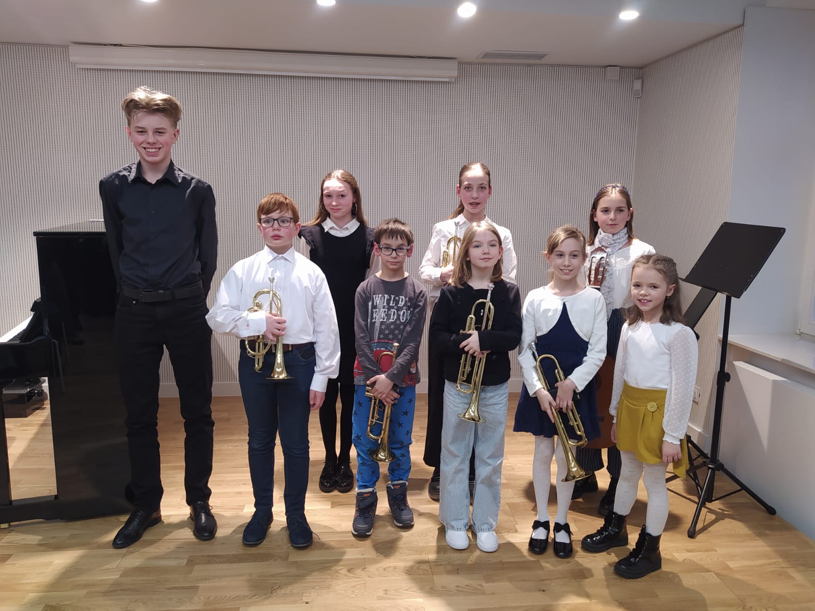 Wystąpili: Olga Framska, Miron Szkudlarski, Konstancja Jarnut i Fryderyk Pacia z klasy trąbki pana Sławomira Framskiego, Marcelina Szukała z klasy gitary pana Stanisława Janaszaka oraz pianiści: Anna Szewczuk z klasy pani Martyny Koberling, Hanna Strzelecka z klasy pani Anny Nędzewicz oraz Aleksander Maziec z klasy pana Mateusza Wizjana.