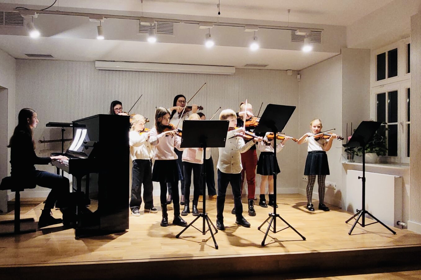 9 grudnia uczniowie klasy skrzypiec p. Sylwii Kaczmarek-Subera zagrali koncert w sali kameralnej naszej szkoły będący zwieńczeniem ich pracy w pierwszym półroczu szkolnym.