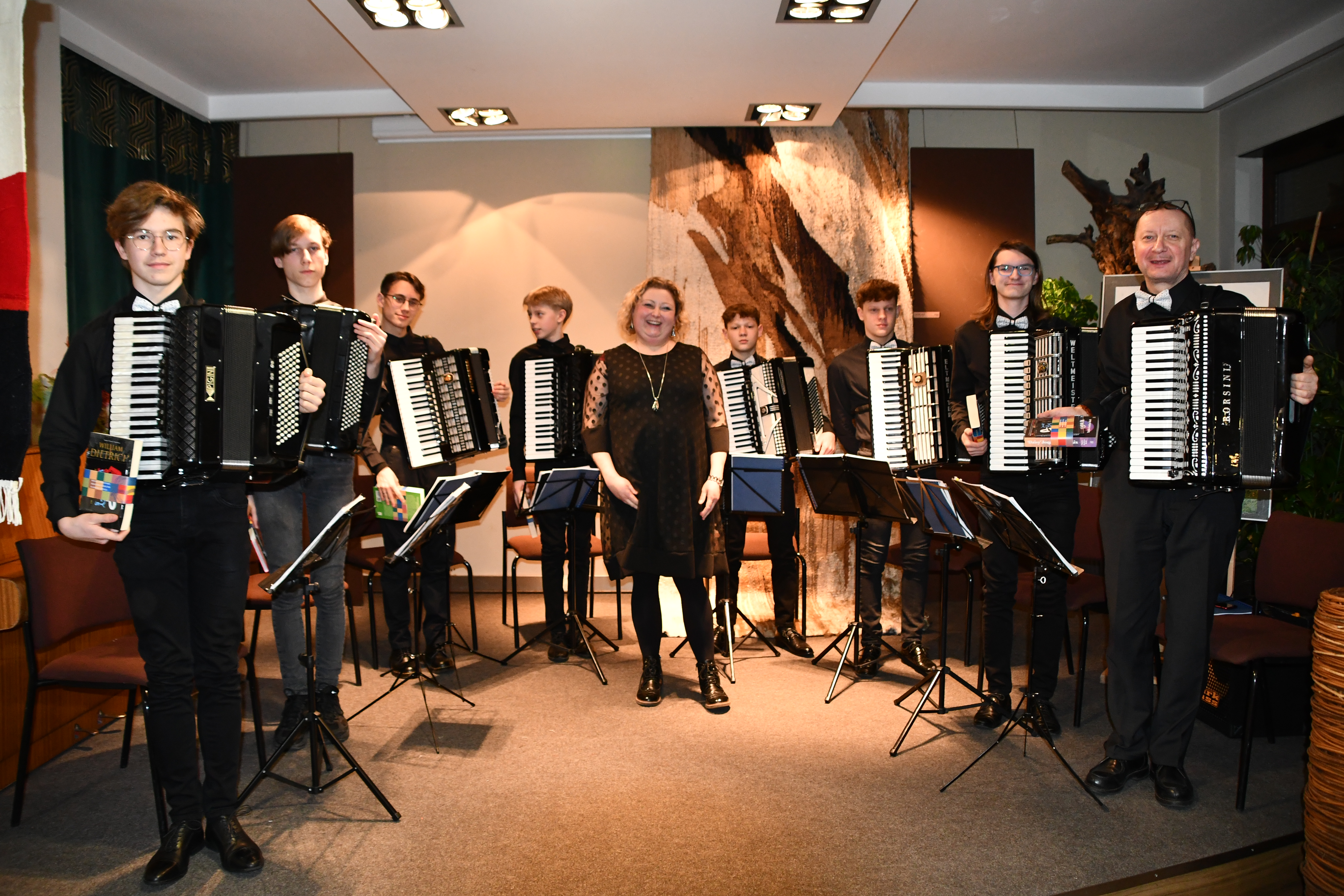 12.01.2023 - Występ Oktetu Akordeonowego w Nowotomyskiej Miejskiej i Powiatowej Bibliotece Publicznej
