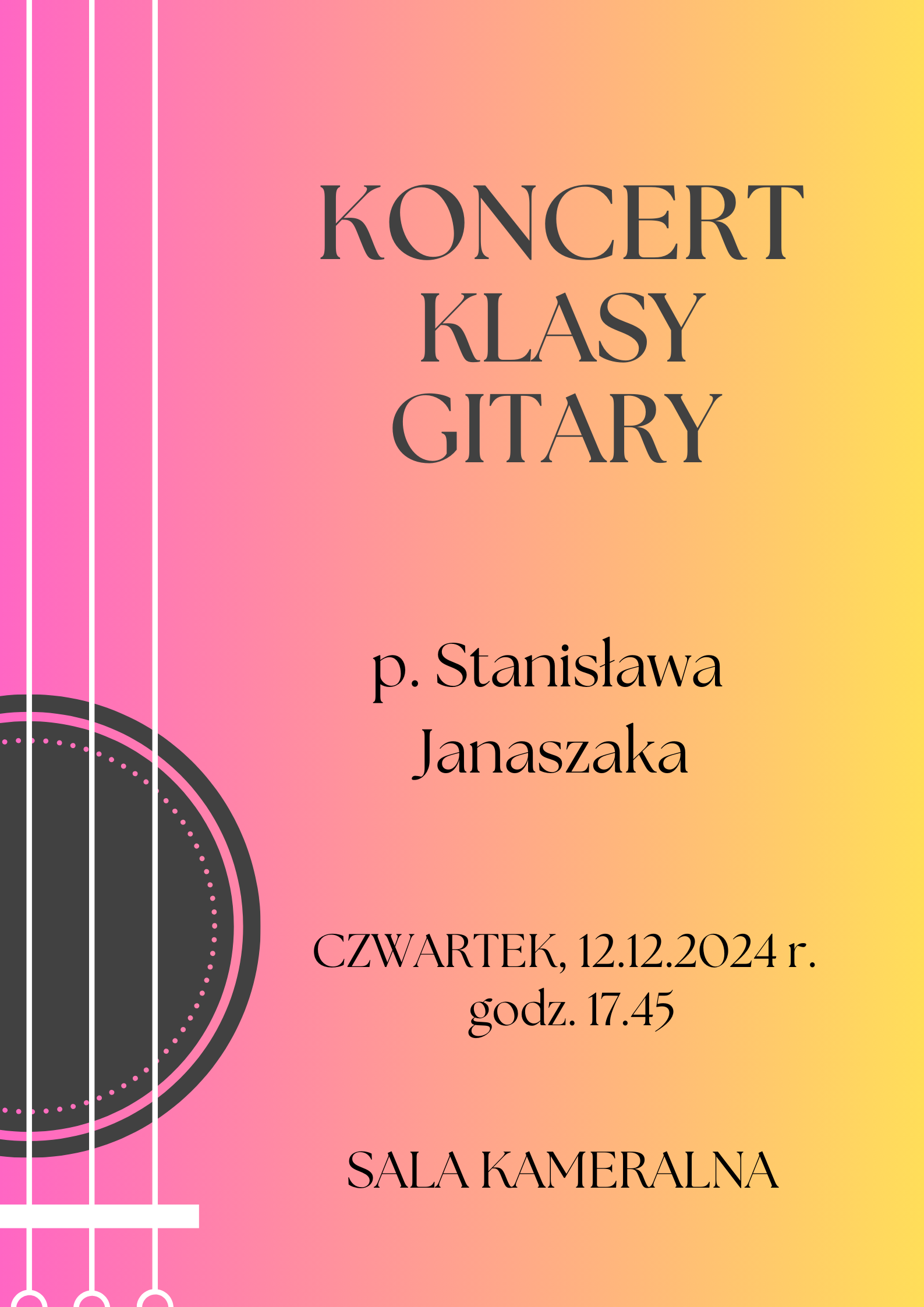 12.12.2025 r. odbył się koncert klasy gitary p. Stanisława Janaszaka. Dwunastka podopiecznych zaprezentowała się w utworach z różnych epok muzycznych.