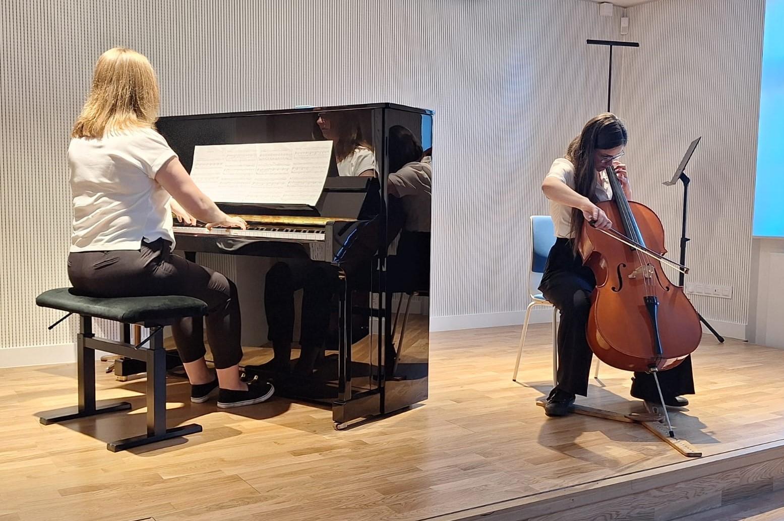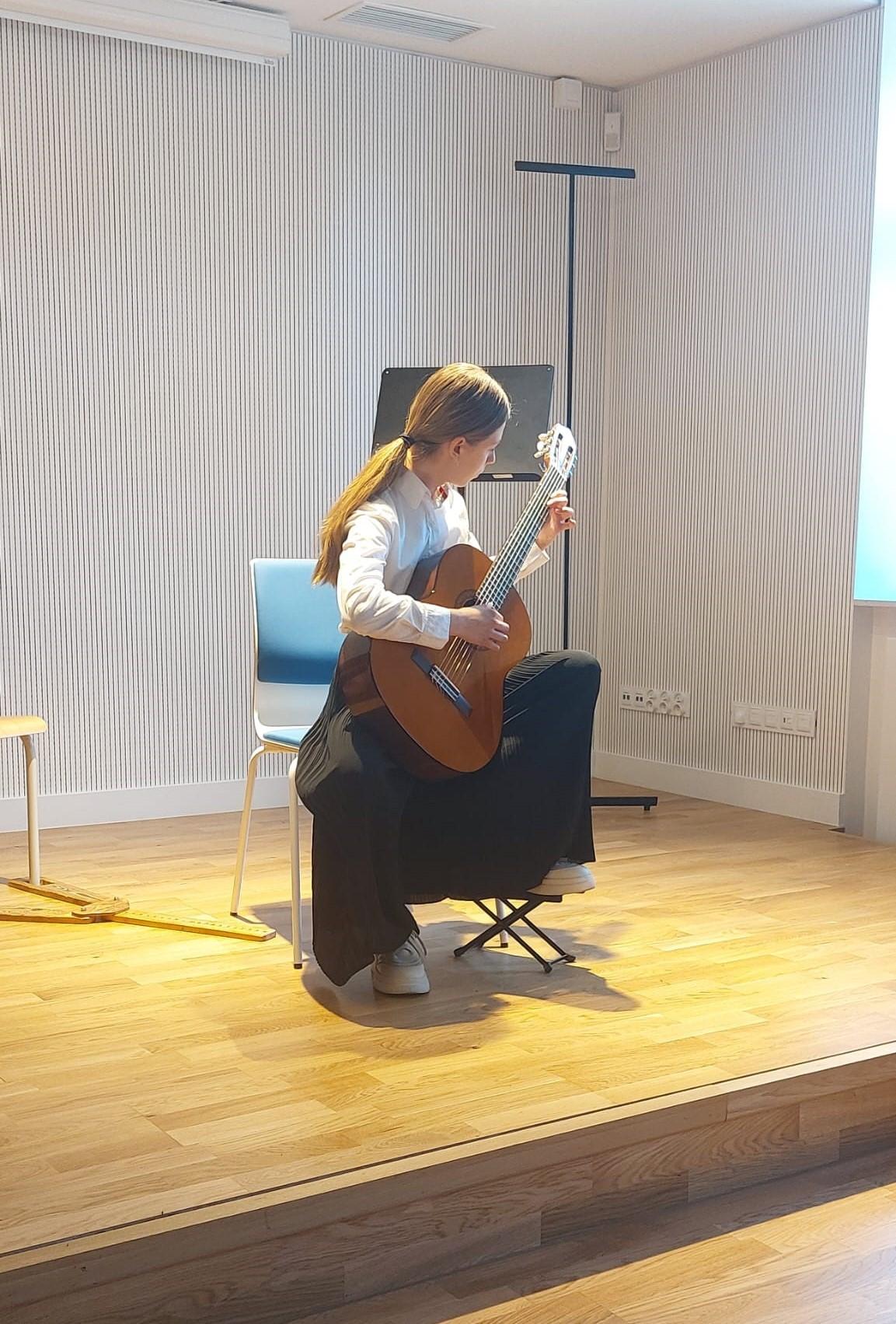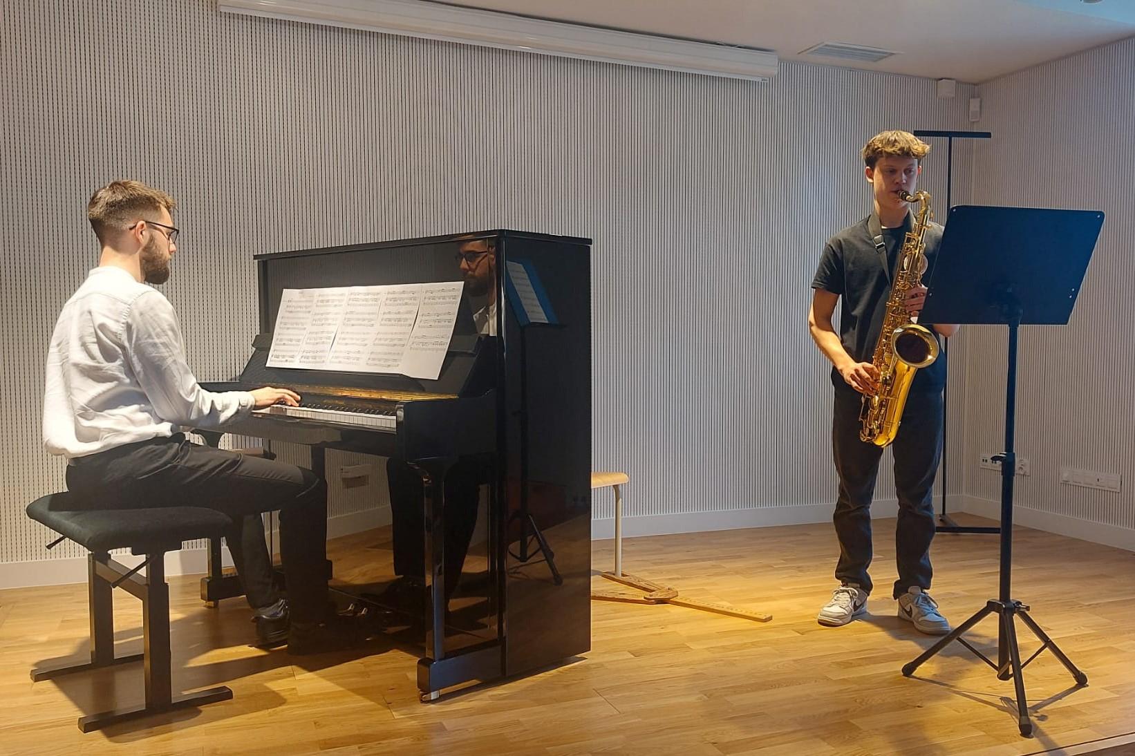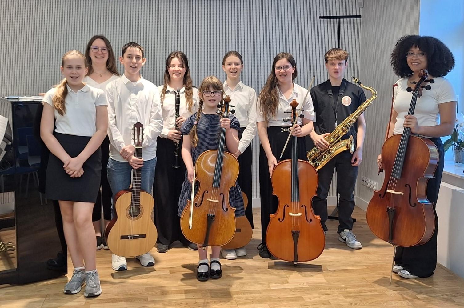 Wystąpili: Zuzanna Kaczmarek i Chioma Egwim z klasy wiolonczeli pani Małgorzaty Jankowskiej, Milena Bendera z klasy gitary pana Stanisława Janaszaka, Maksymilian Dziechciarek klasy saksofonu pana Rafała Kubale oraz uczniowie podchodzący wkrótce do egzaminów końcowych: Michalina Wachowiak z klasy skrzypiec pani Sylwii Kaczmarek-Subery, Zuzanna Mańka z klasy wiolonczeli pani Małgorzaty Jankowskiej, Maria Mańka z klasy klarnetu pana Rafała Kubale, Bianka Utrata z klasy fortepianu pani Martyny Koberling oraz Aleksander Matysiak z klasy gitary pana Stanisława Janaszaka. Solistom przy fortepianie towarzyszyli: pani Julia Wizjan, pani Martyna Koberling i pan Mateusz Kowalski.