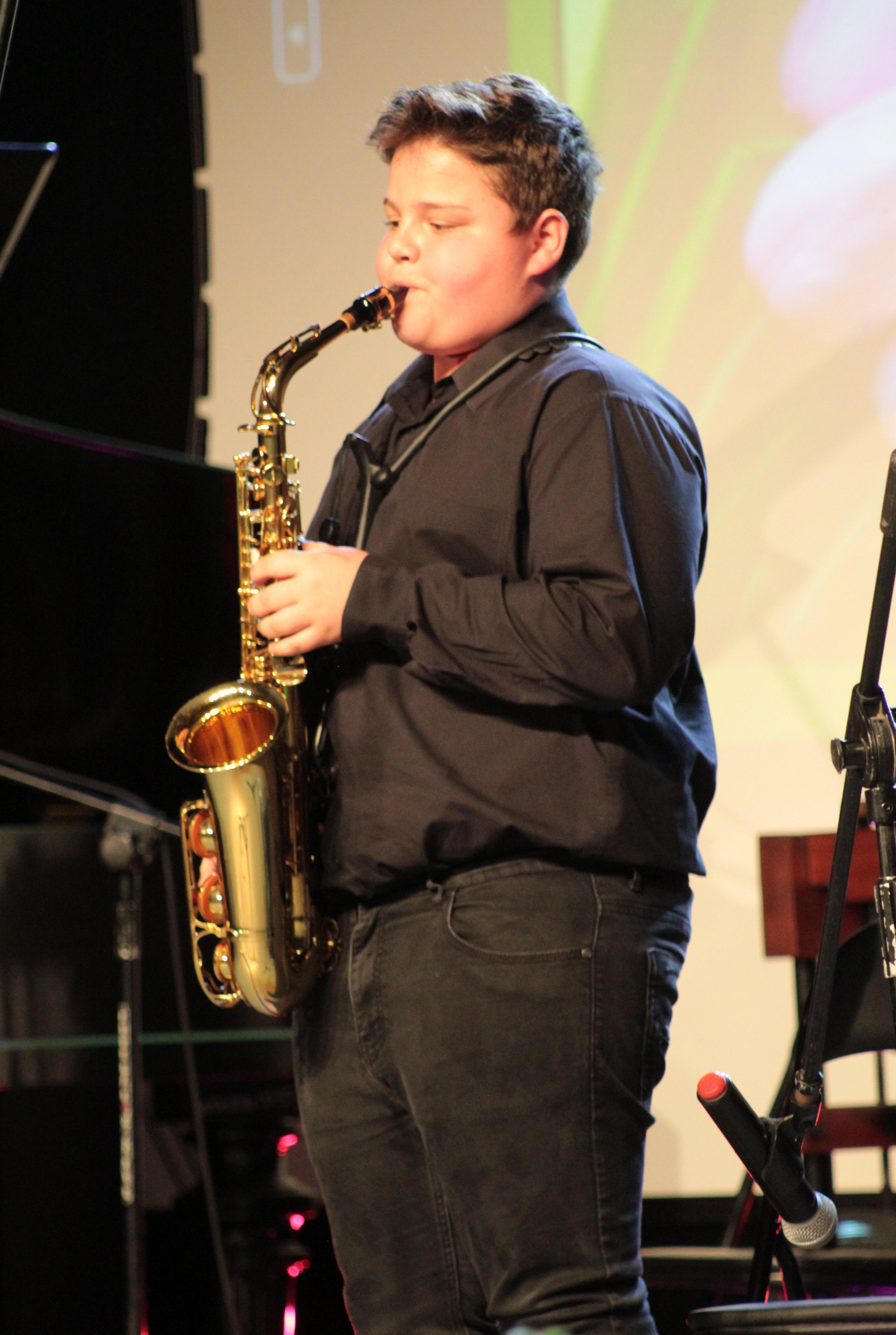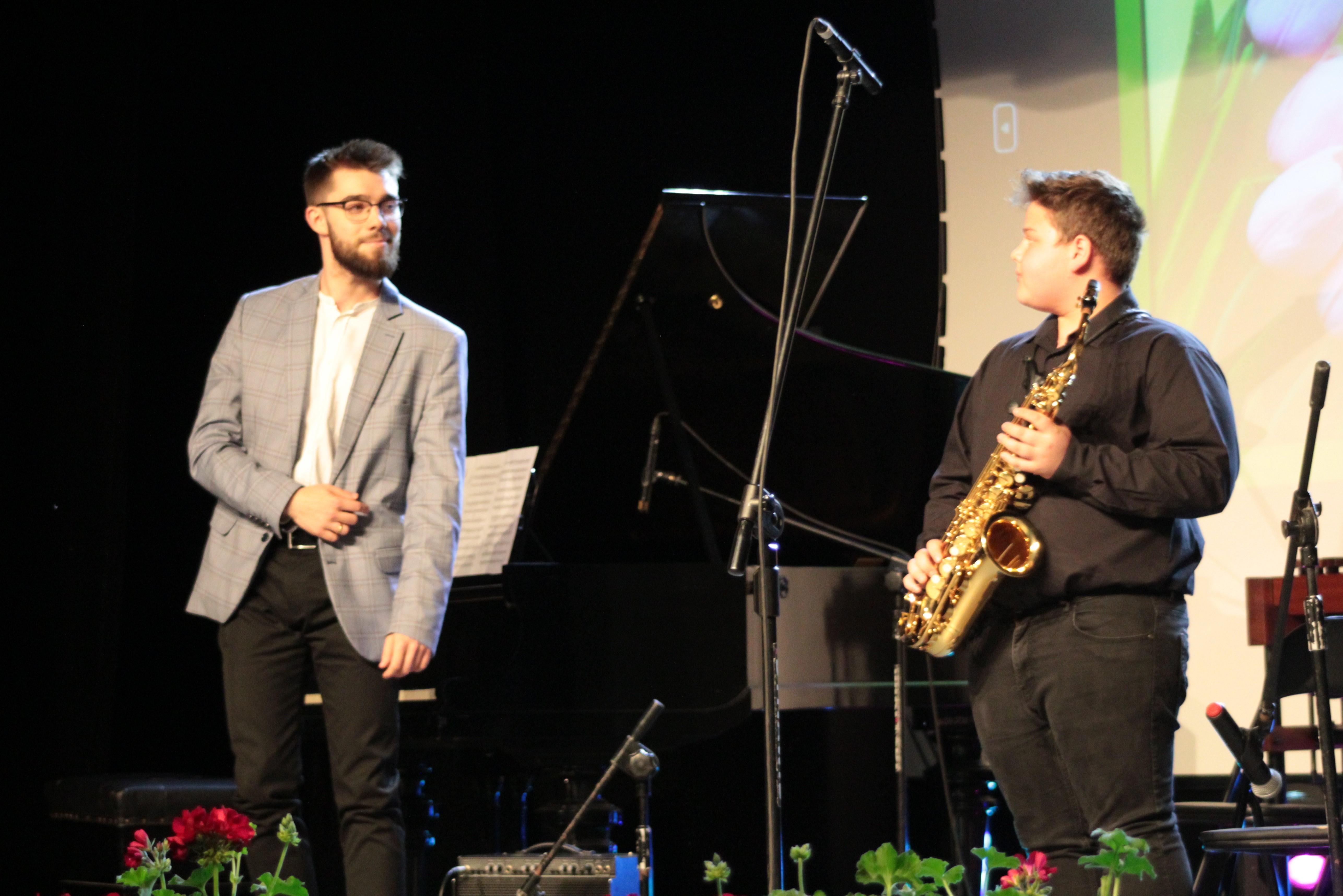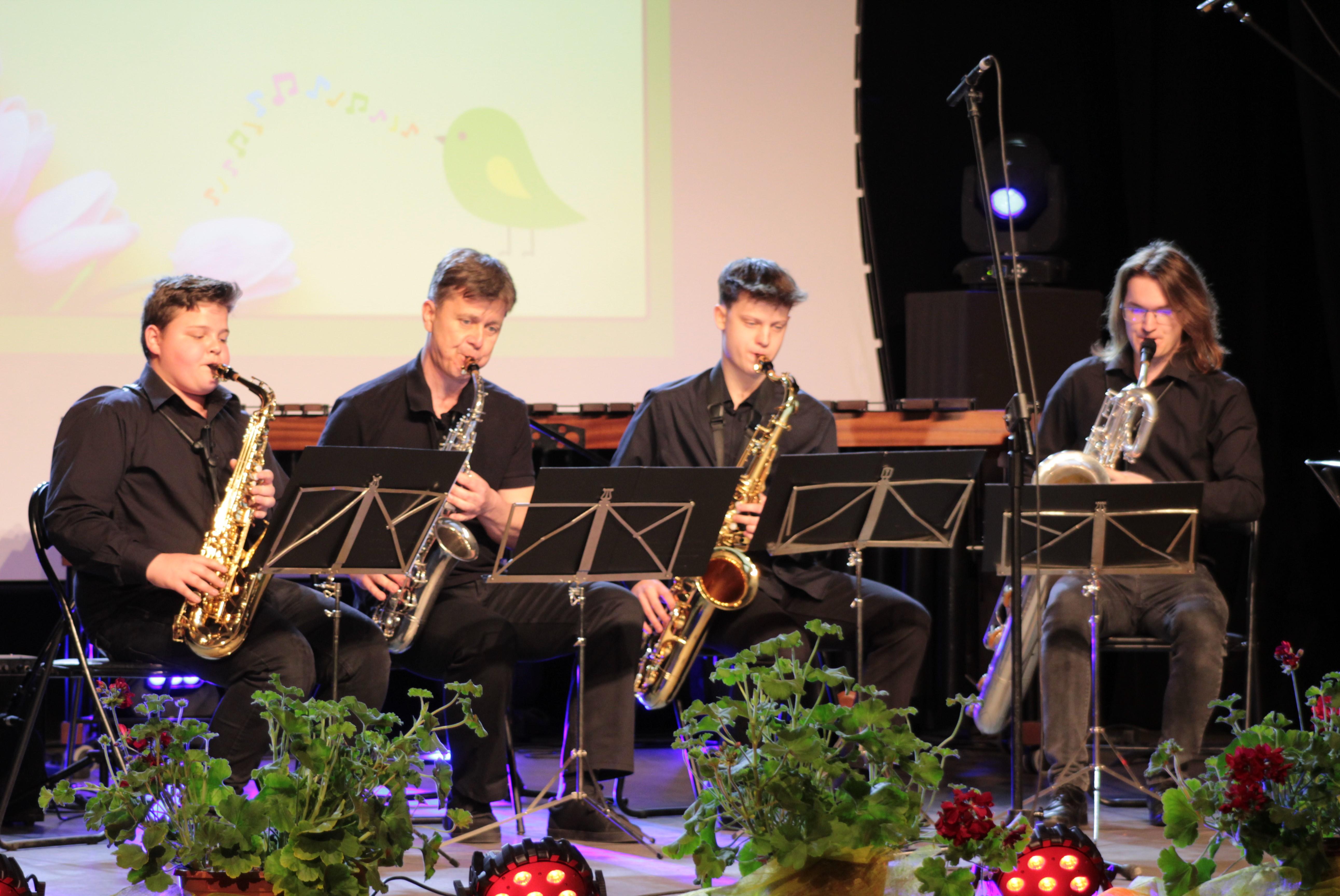 Kwartet Saksofonowy w składzie: Marcel Brambor, Maksymilian Dziechciarek, Miłosz Migoń, naucz. Rafał Kubale